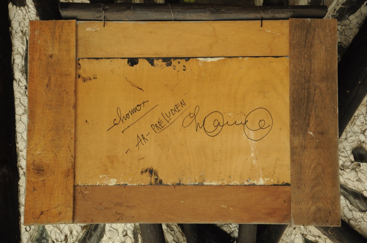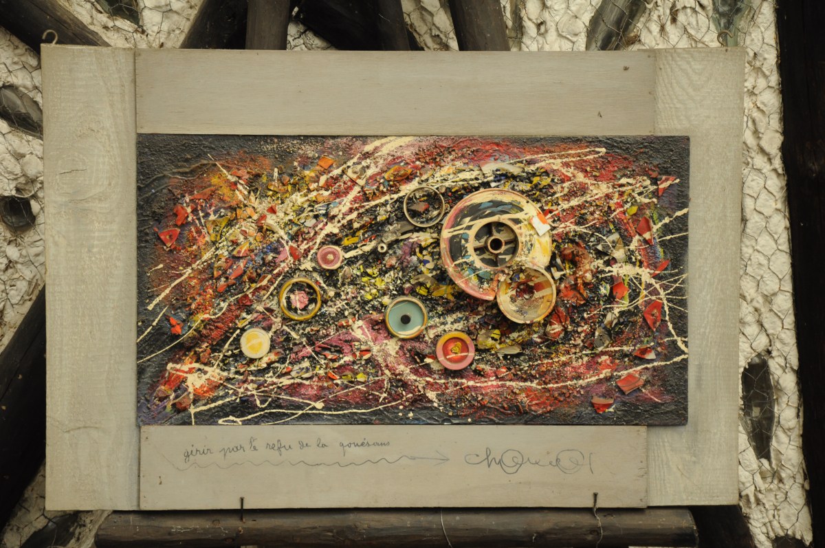 Bas relief, plastique, débris de vere, peinture sollé contre-plaqué, signé et titré.