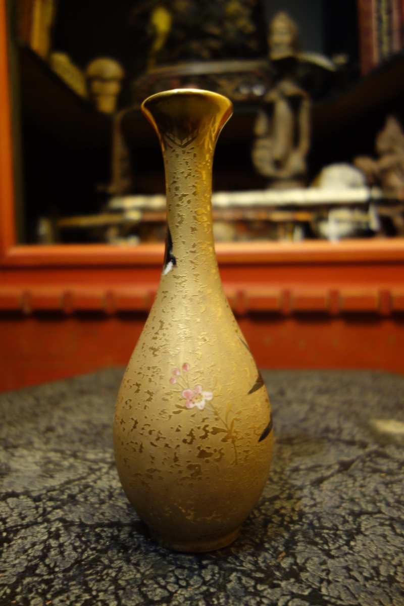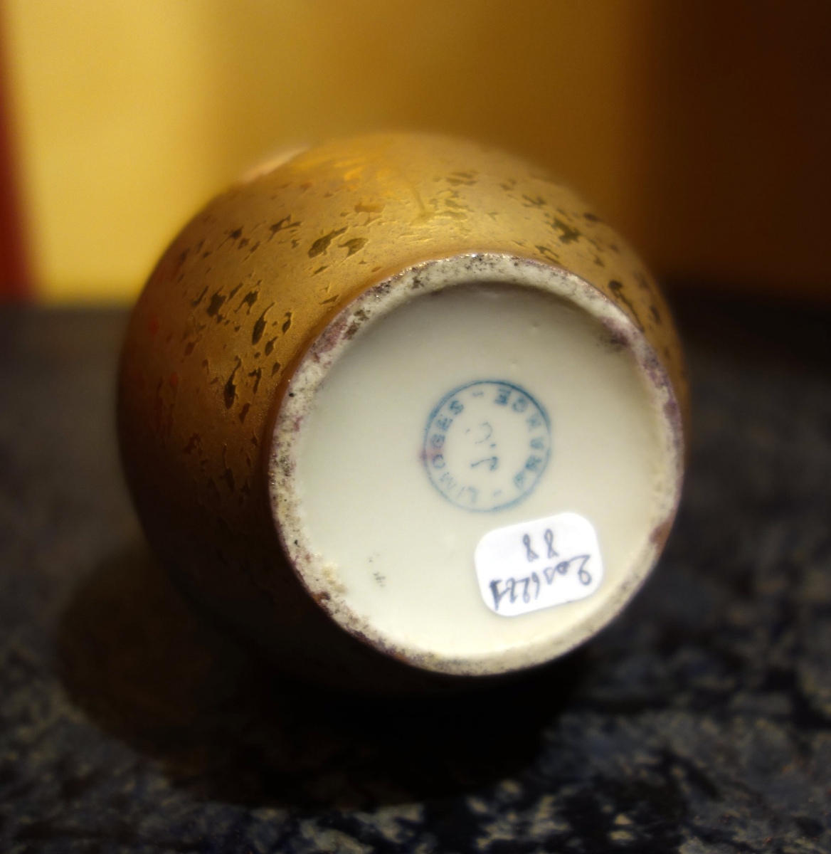 HISTOIRE NATURELLE. LIMOGES.VASE aux HIRONDELLES en porcelaine. Signé dans un cachet rond " JC " sous la base.