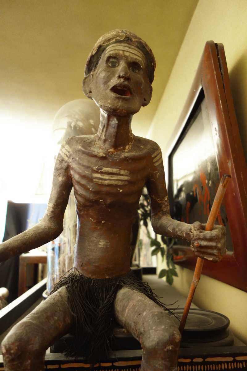 Il y a 2000 ans dans les iles Célèbes du Pacifique, les Toradjas creusaient, dans la falaise surplombant leurs villages, des excavations destinées aux morts et dans les quelles ils plaçaient des mannequins de bois appuyés à une rambarde. Ces mannequins d1,22 m dits Tau-Tau symbolisaient les ancêtres défunts de la communauté Sulawesi regardant vivre leur village. La conscience des ancêtres regardait ainsi en permanence la vie de leurs enfants et petits-enfants.