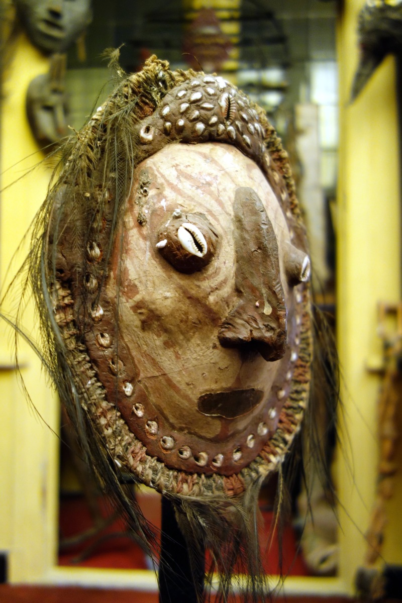 PACIFIQUE - XXe. MASQUE TAMBUNAN en matière animale, cauris, fibres, vanneries.