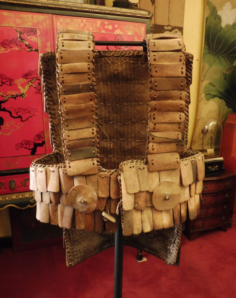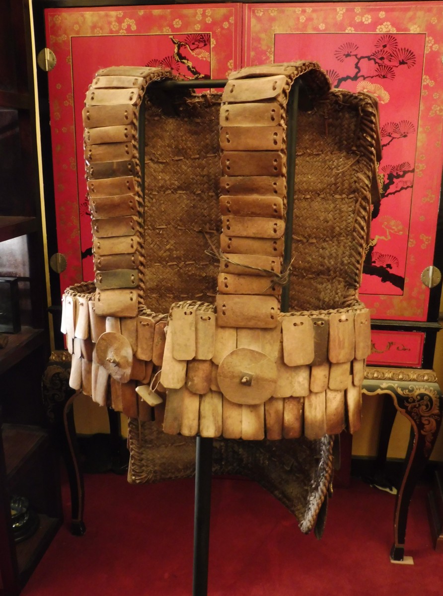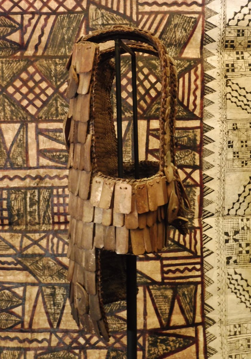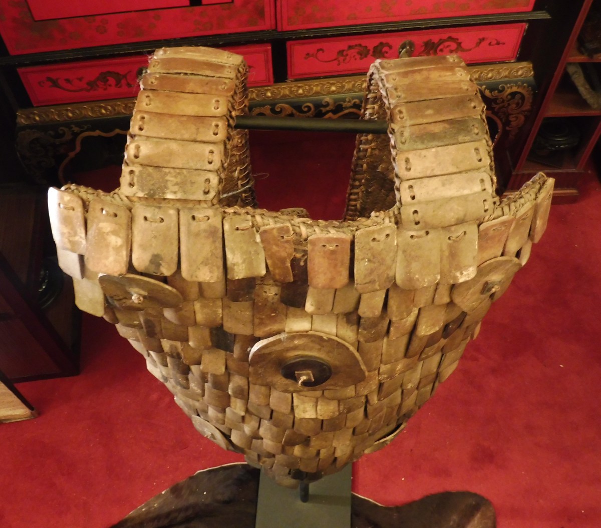 PACIFIQUE - TORAJA - SULAWESI (Célèbes). ARMURE de GUERRIER en os, cuir, métal, vannerie.