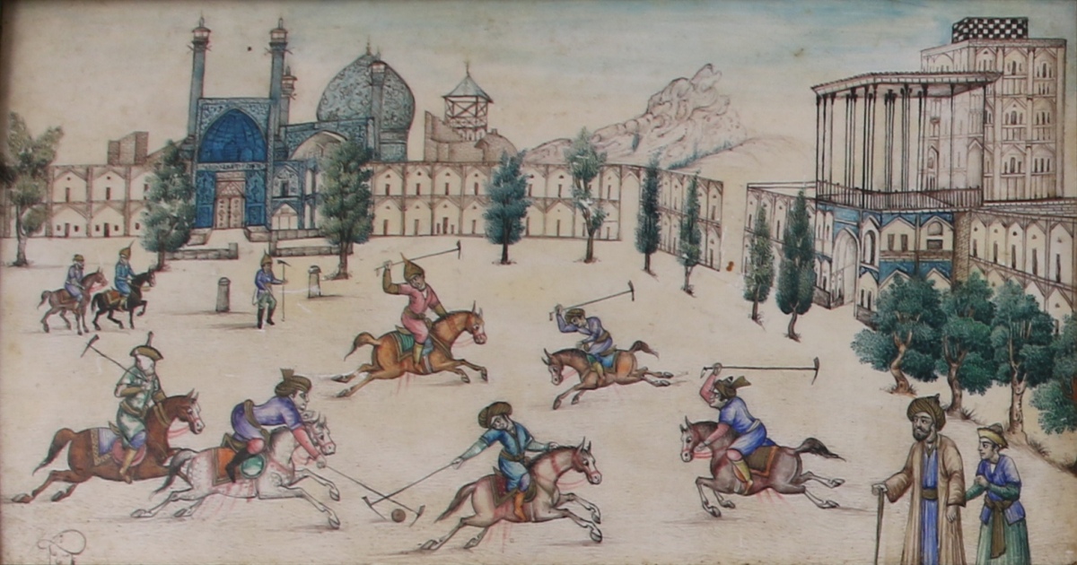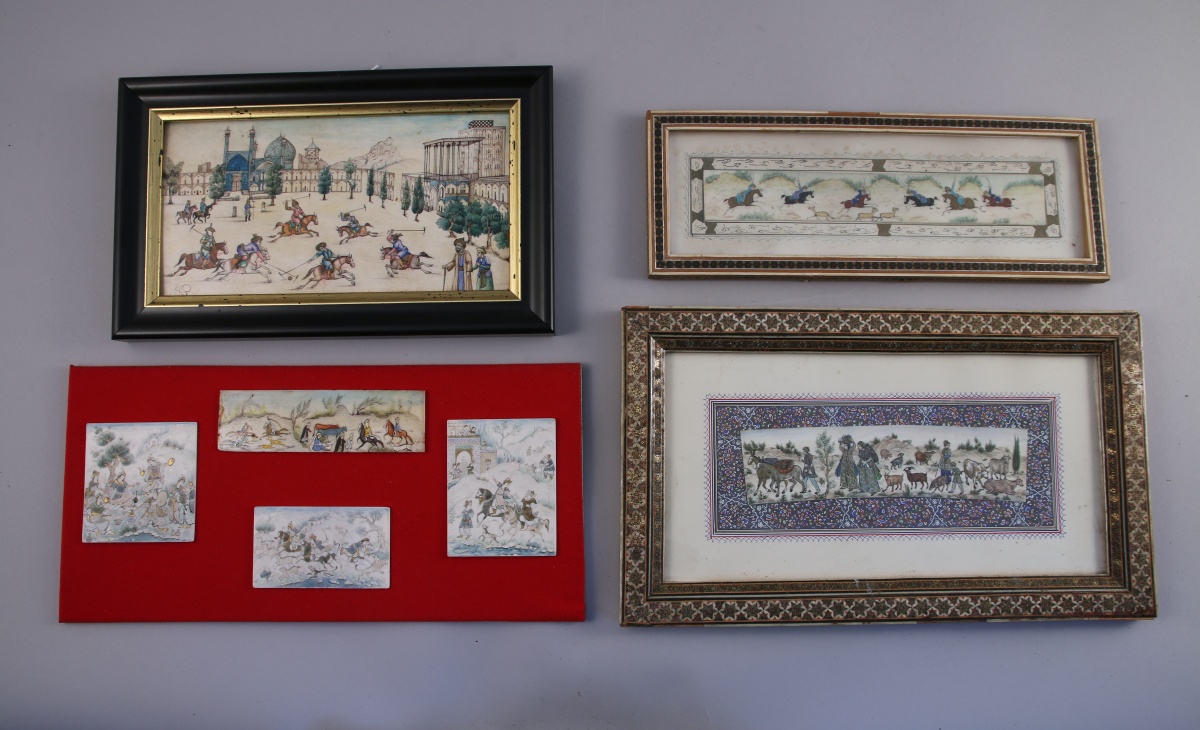 - Scène de polo. Signée "Abdallah Mosevar". Cadre: 15,5 x 25, 5 cm.