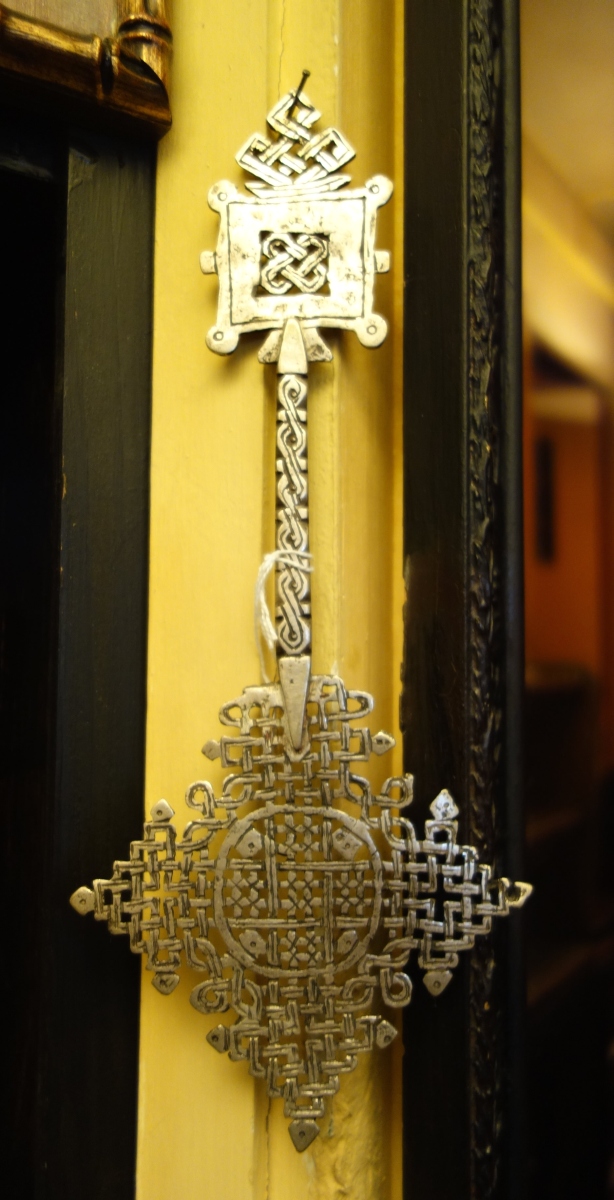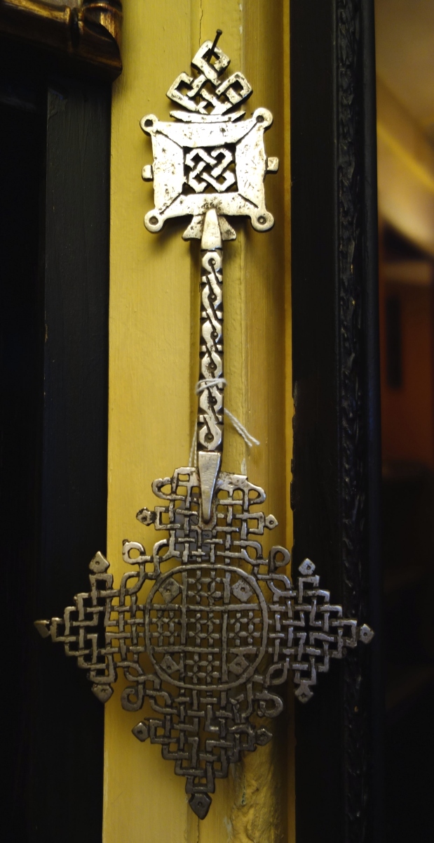 ÉTHIOPIE. CROIX de BÉNÉDICTION en argent (?) ajouré à décor géométrique.