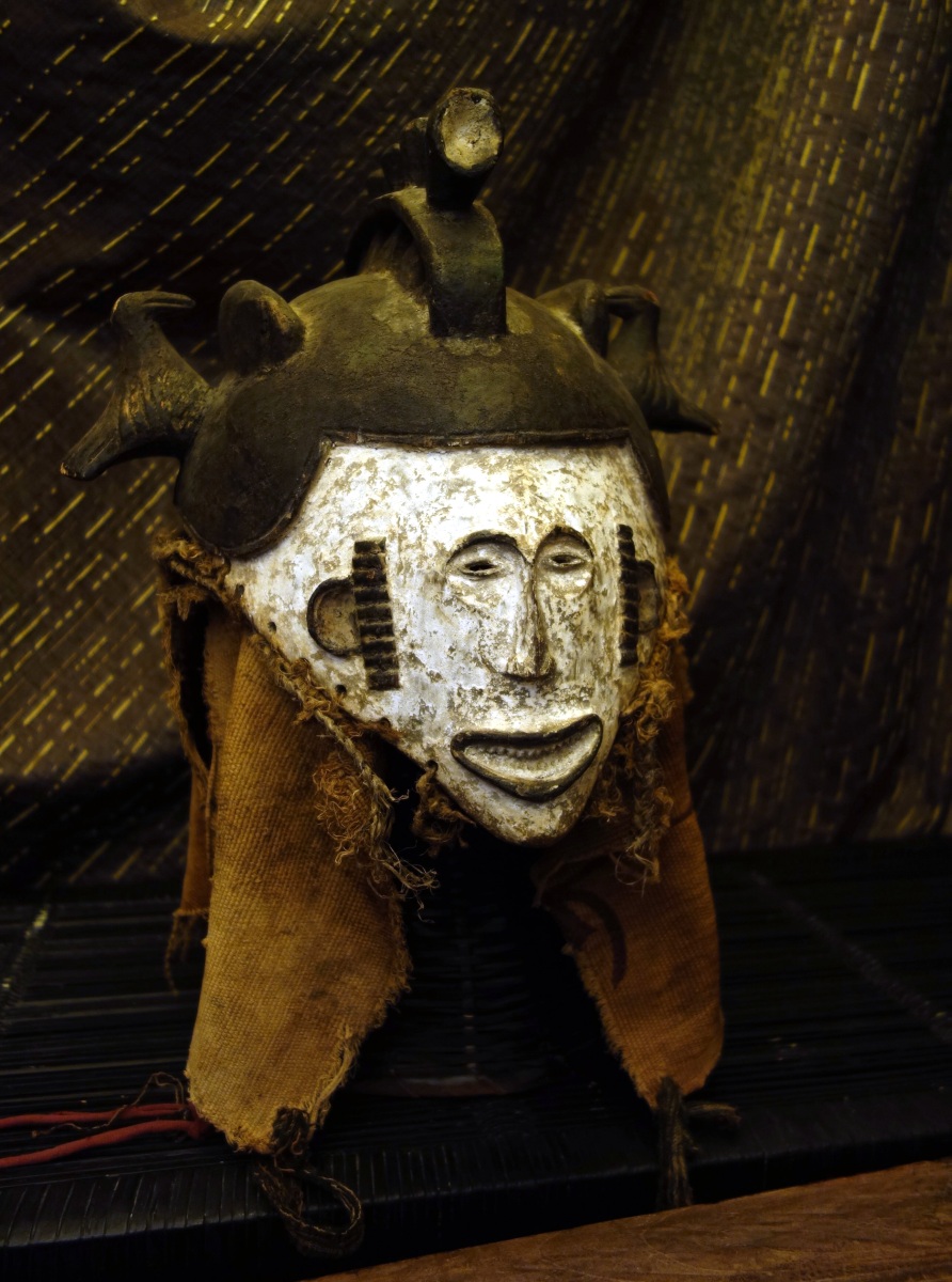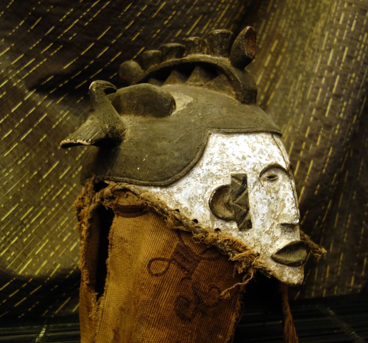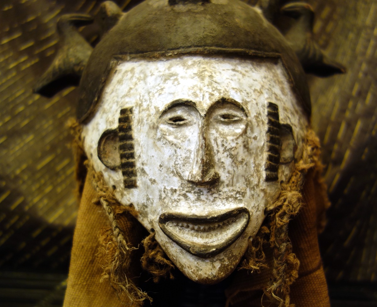 NIGÉRIA - IBO. MASQUE JANUS en bois sculpté et kaolin....