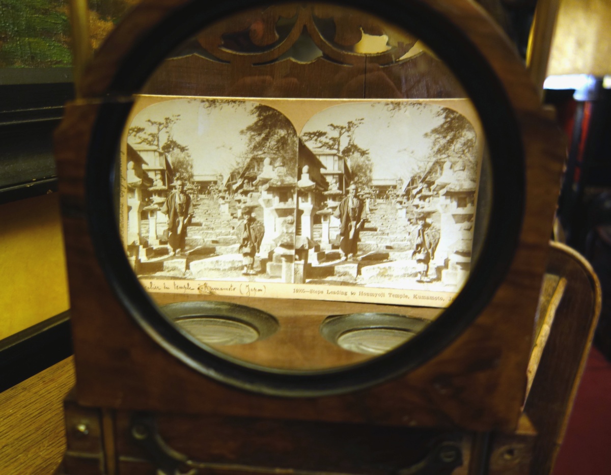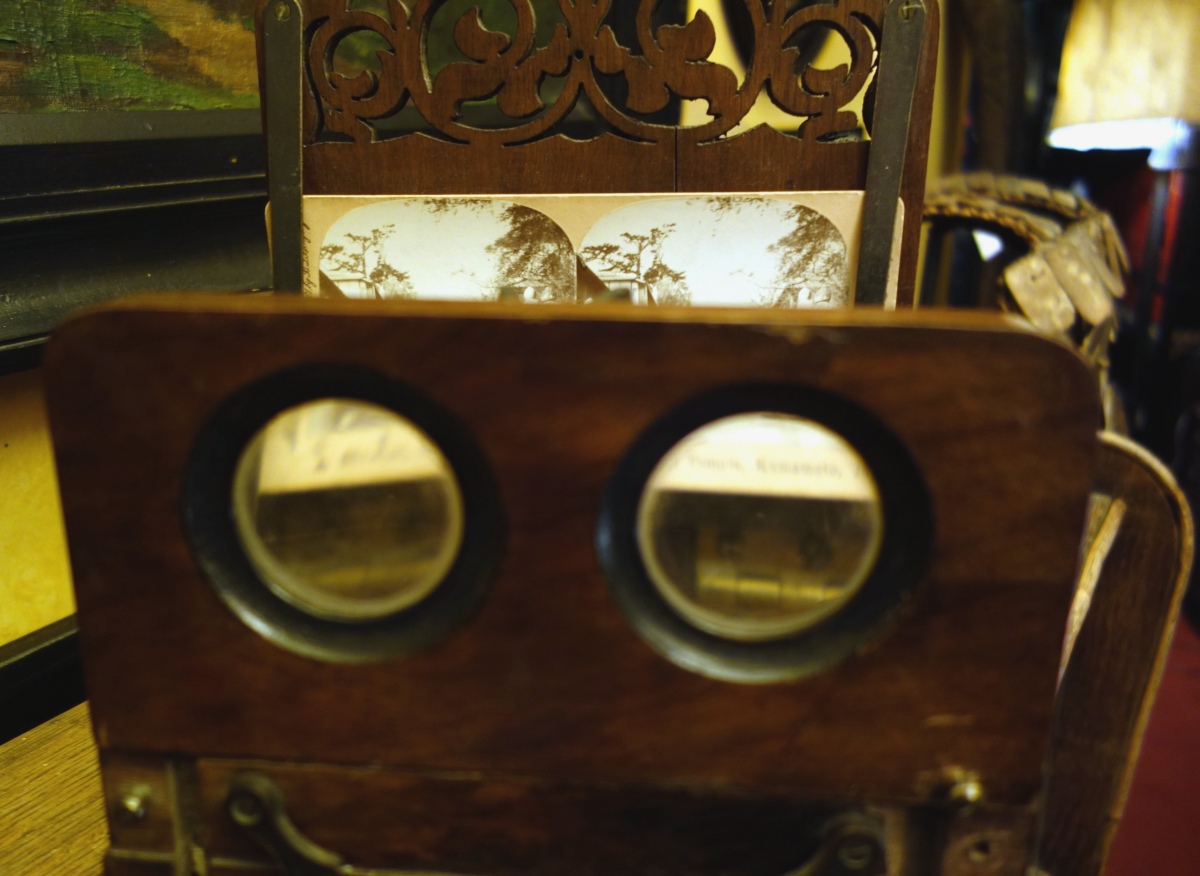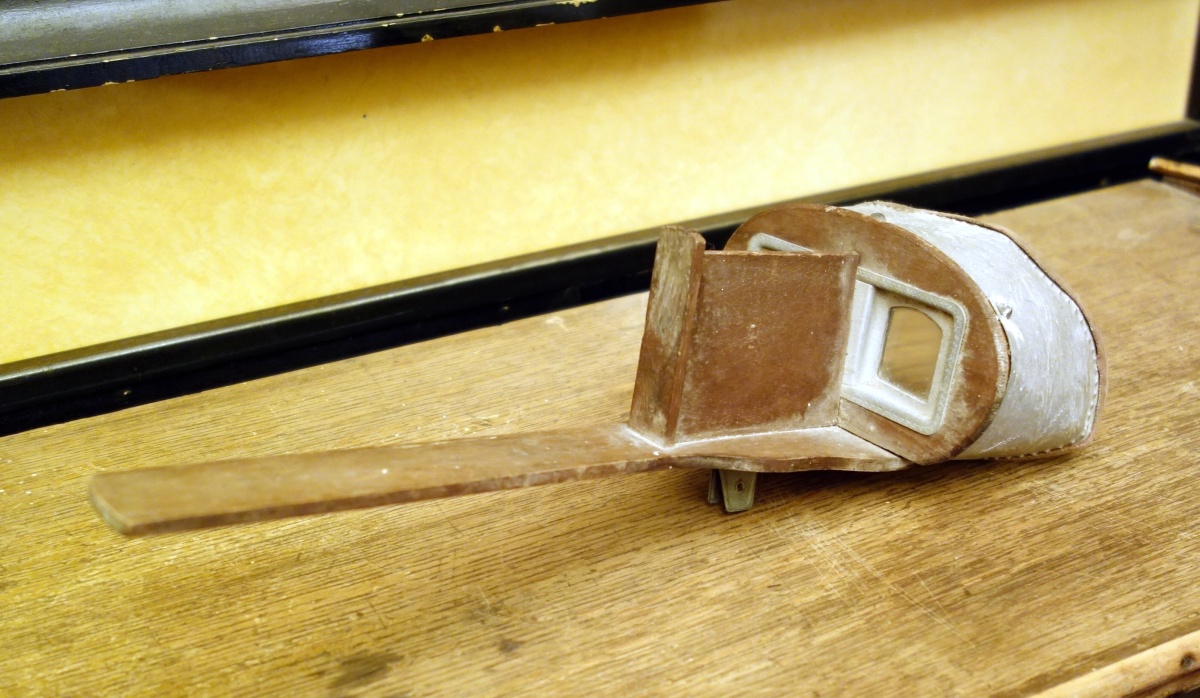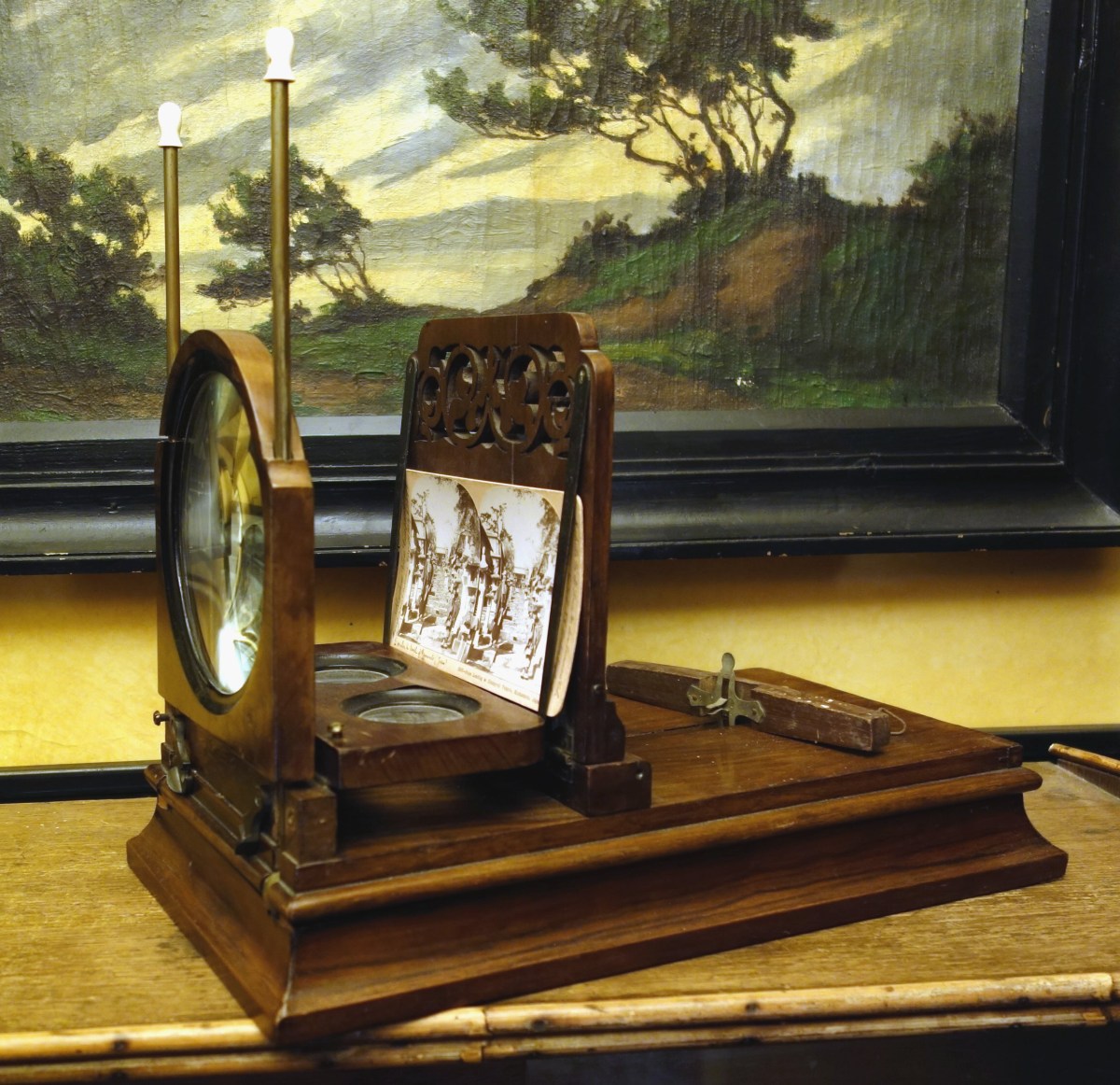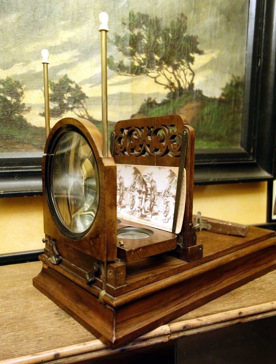 CURIOSITÉ. APPAREIL de LECTURE de VUES STÉRÉOSCOPIQUES en acajou.