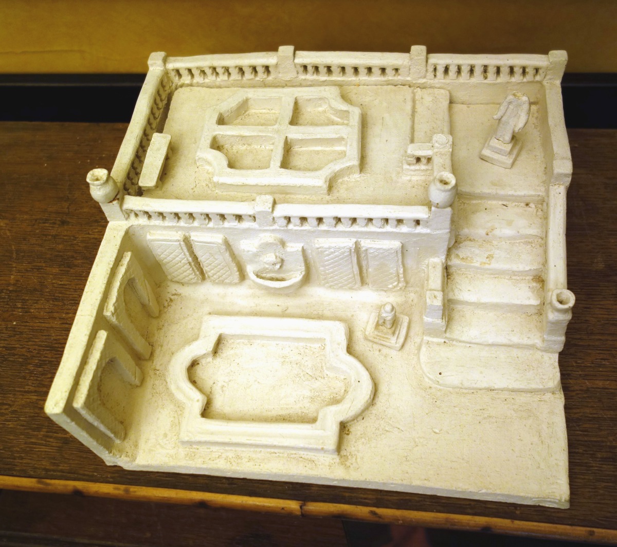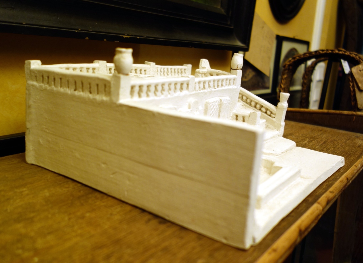 CURIOSITÉ. MAQUETTE de jardin en terrasse en plâtre blanc.