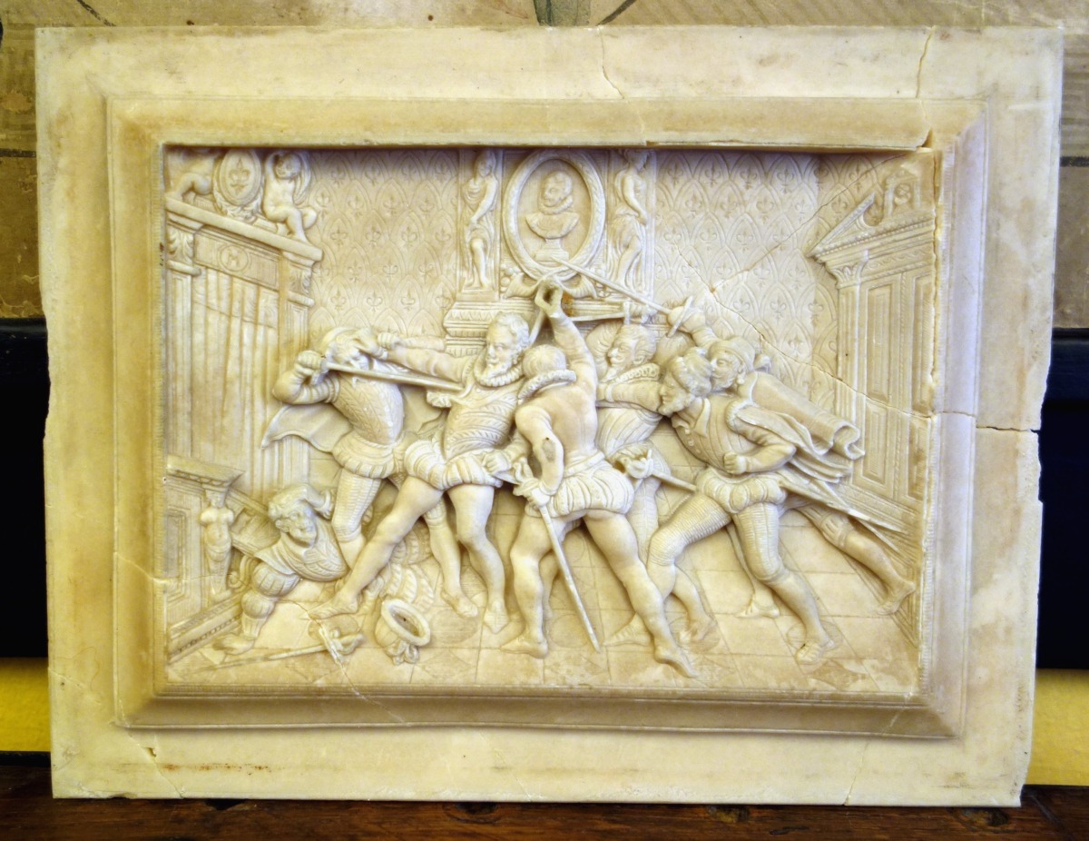 CURIOSITÉ. ASSASINAT DU DUC DE GUISE, bas-relief en pierre de savon.