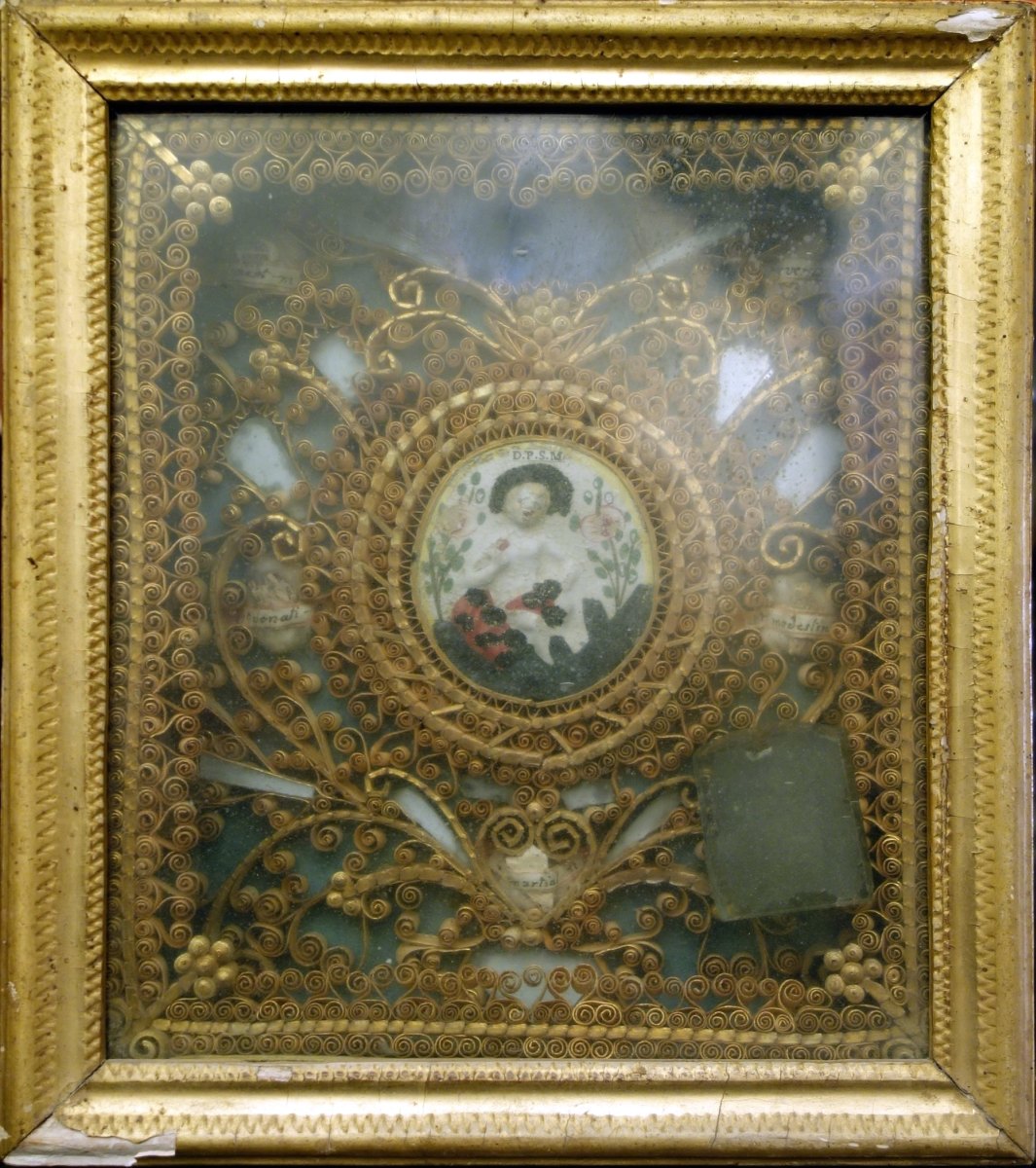 RELIQUAIRE PAPEROLE dans un cadre en bois doré représentant les...