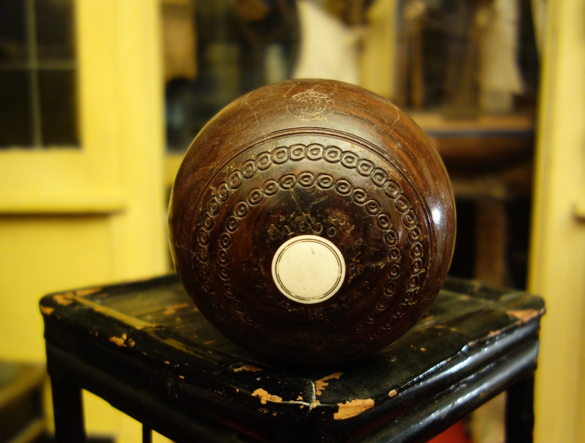BOULE en bois et os monogrammé " FC ", gravé " OFFICIAL DB "