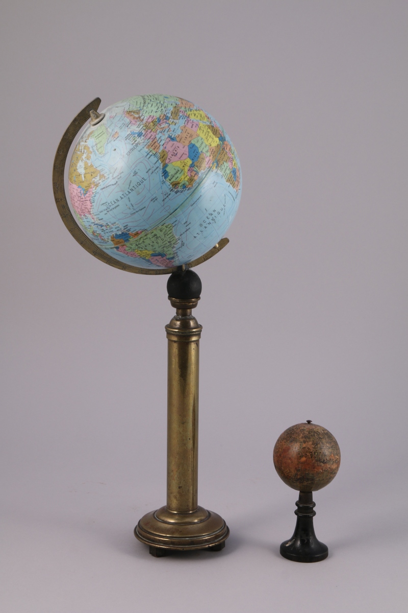 JOINT: Deux GLOBES TERRESTRES. Haut. 42 et 13 cm.