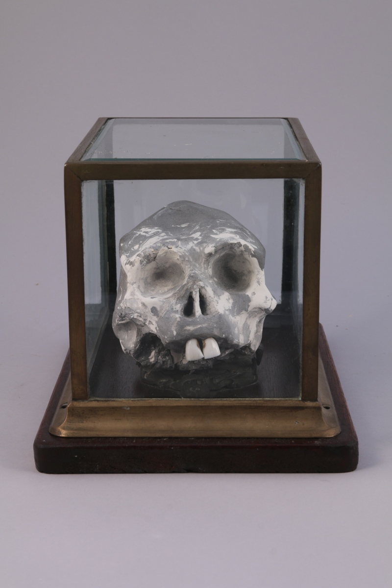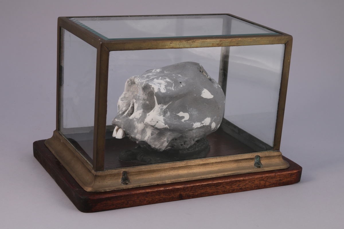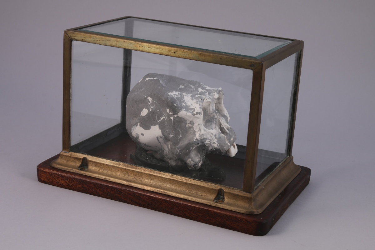 CURIOSITÉ. MOULAGE de CRÂNE d'homme préhistorique en plâtre et ciment.