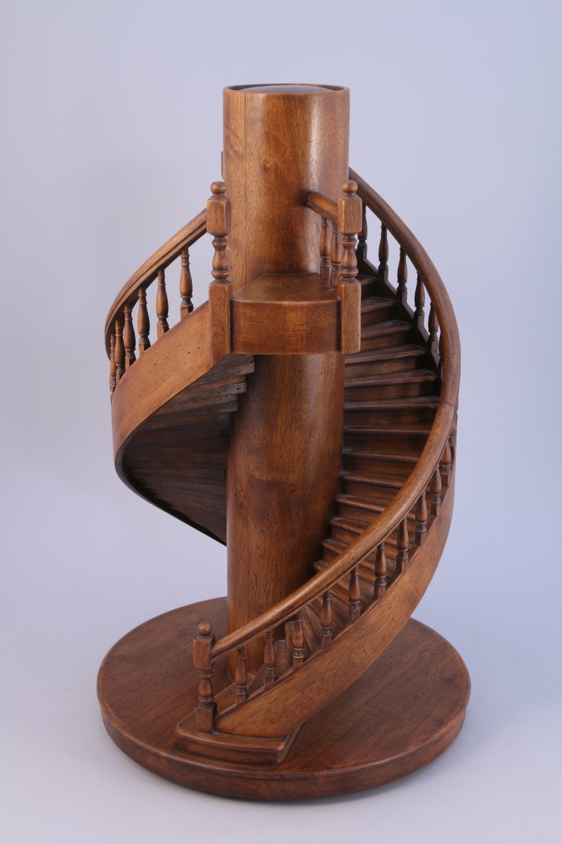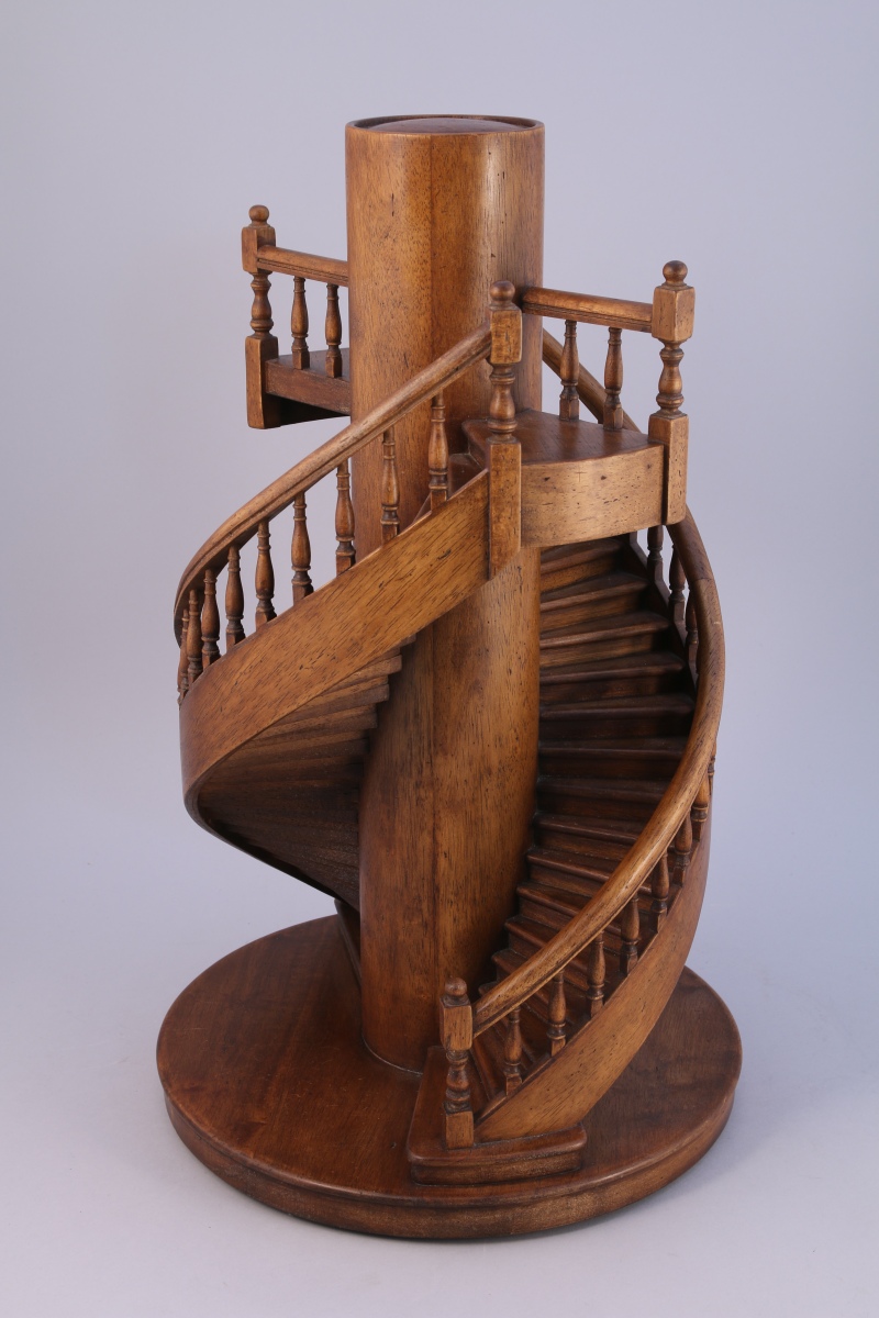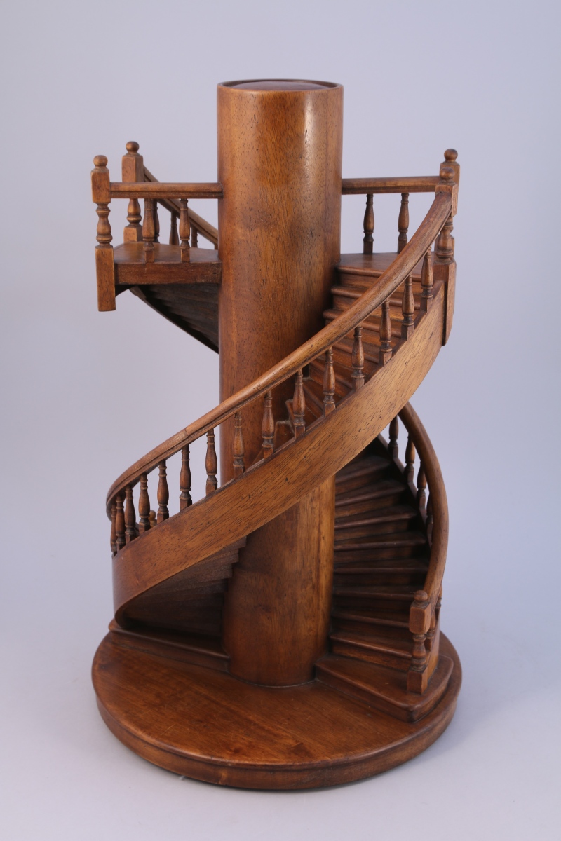 ESCALIER DE MAÎTRISE en colimaçon à double évolution en bois sculpté.