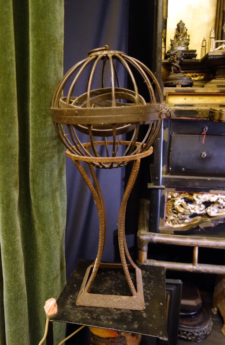 INDE. LANTERNE sphérique à cardan de palanquin à éléphant en fer forgé.