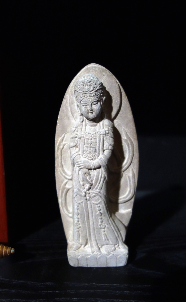 JOINT: SCULPTURE bas-relief figurant un moine en prière (haut. 17 cm), PETIT COFFRE en bois laqué rouge, ouvrant par deux vantaux (Haut. 20 cm), une BOUSSOLE de géomancie Feng Shui, petite BOITE en bois laqué rouge avec un oiseau et un FIXÉ SOUS VERRE figurant une joueuse de cithare dans un jardin dans un encadrement (36 x 26,5 cm).