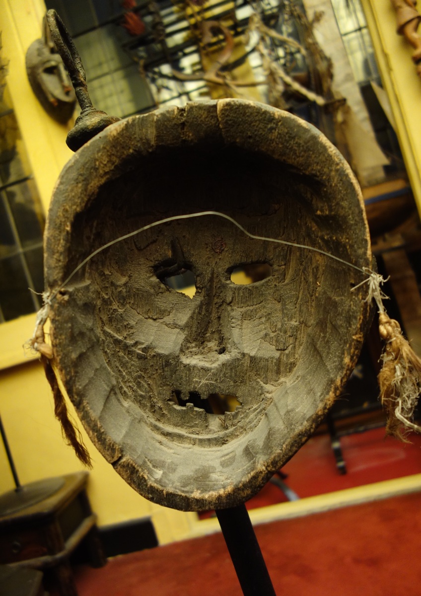 NÉPAL. MASQUE de CHAMAN en bois, scarifié. Fixation en raphia.