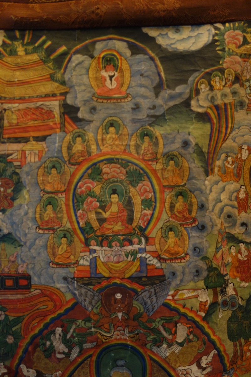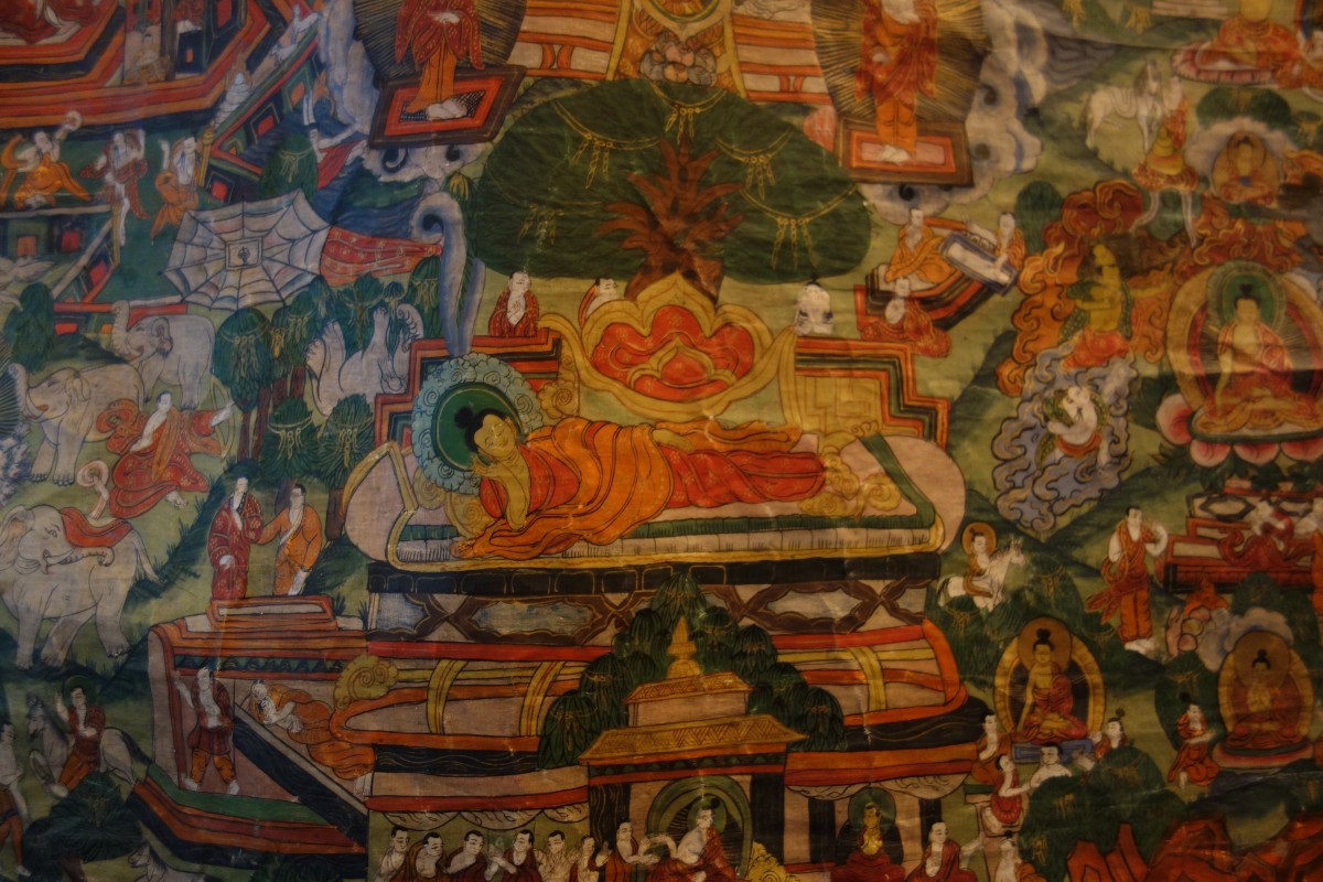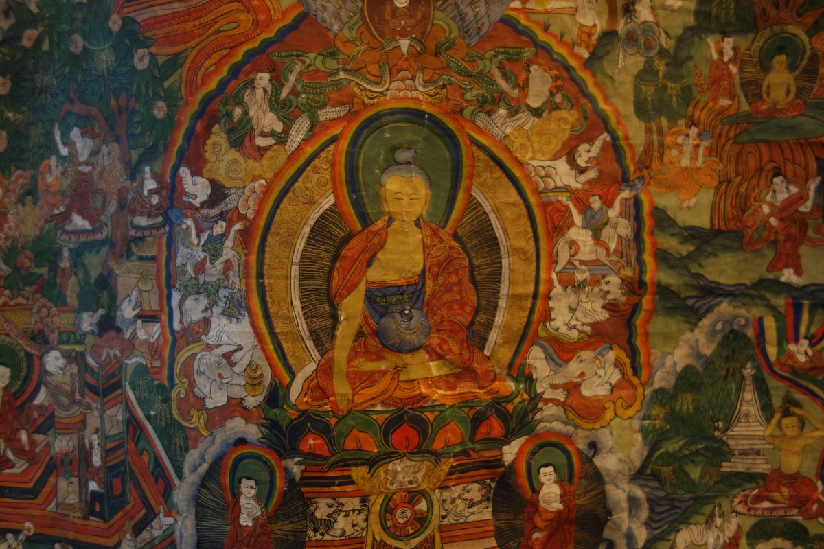TIBET - Début du XXe. TANGKA, scènes de la vie de Bouddha.