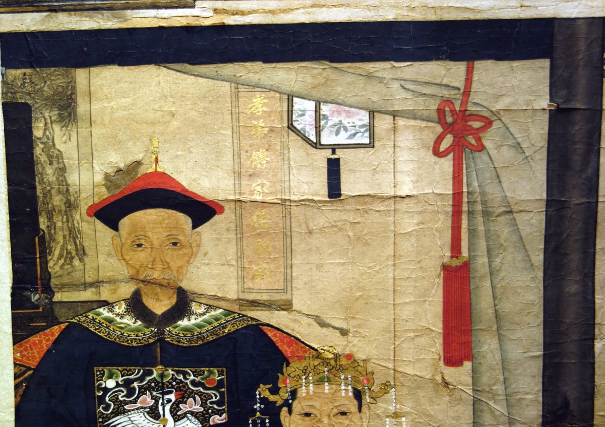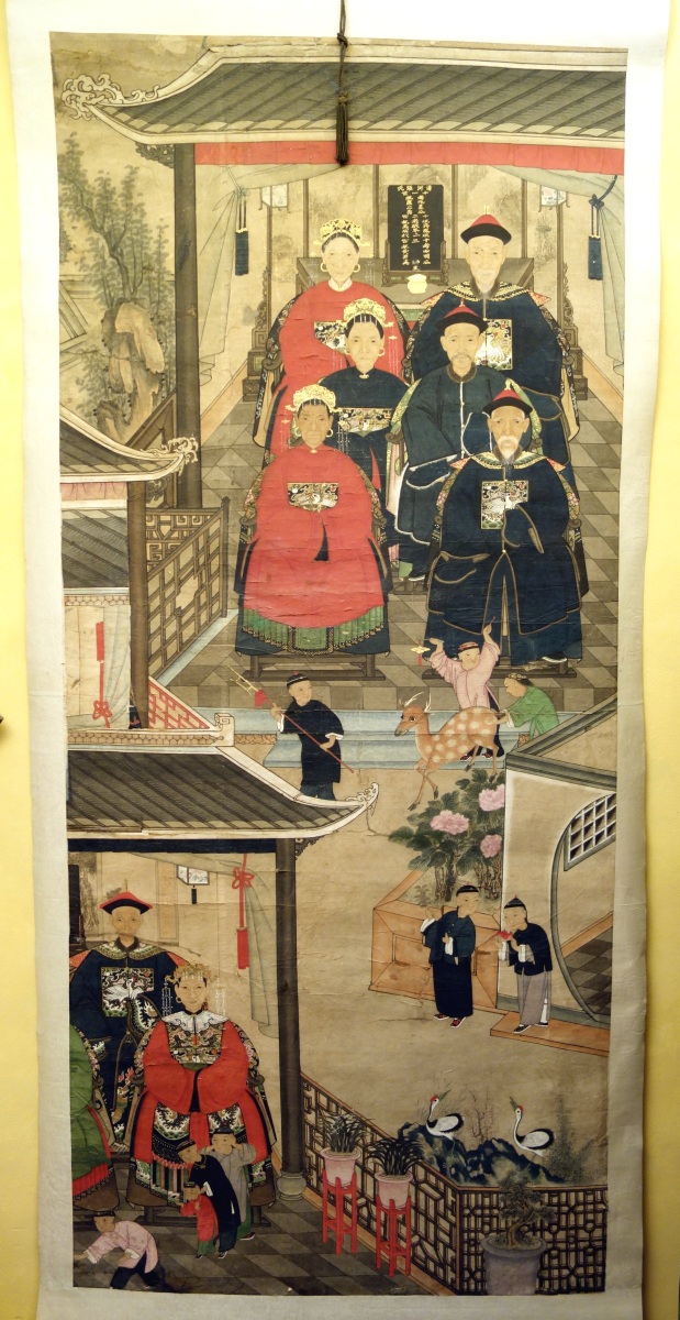 CHINE - XIXe. Encre et couleurs sur papier, portraits d'ancêtres.