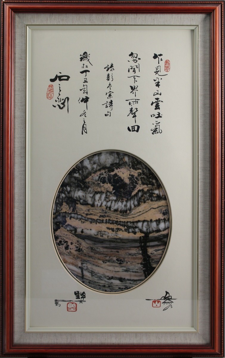 CHINE - XXe. Pierre encadrée. Idéogrammes. 53,5 x 28 cm.