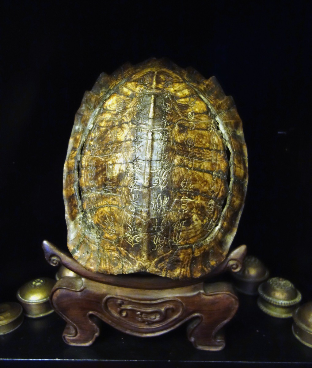 CHINE. CARAPACE divinatoire sculptée d'idéogrammes, utilisée pour la scapulomancie