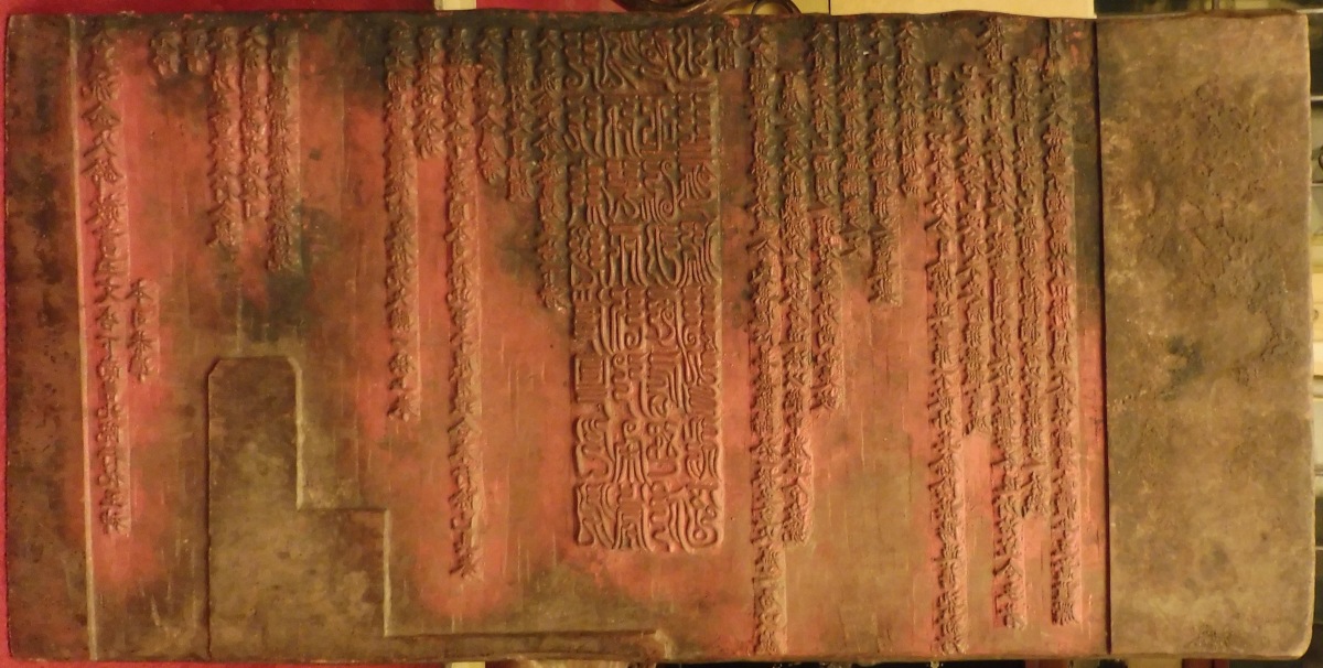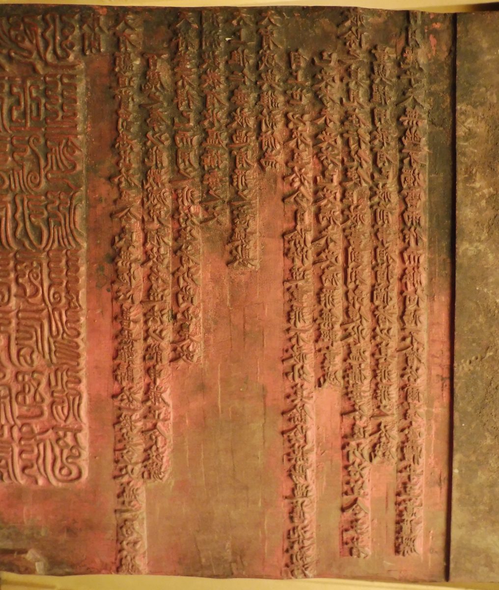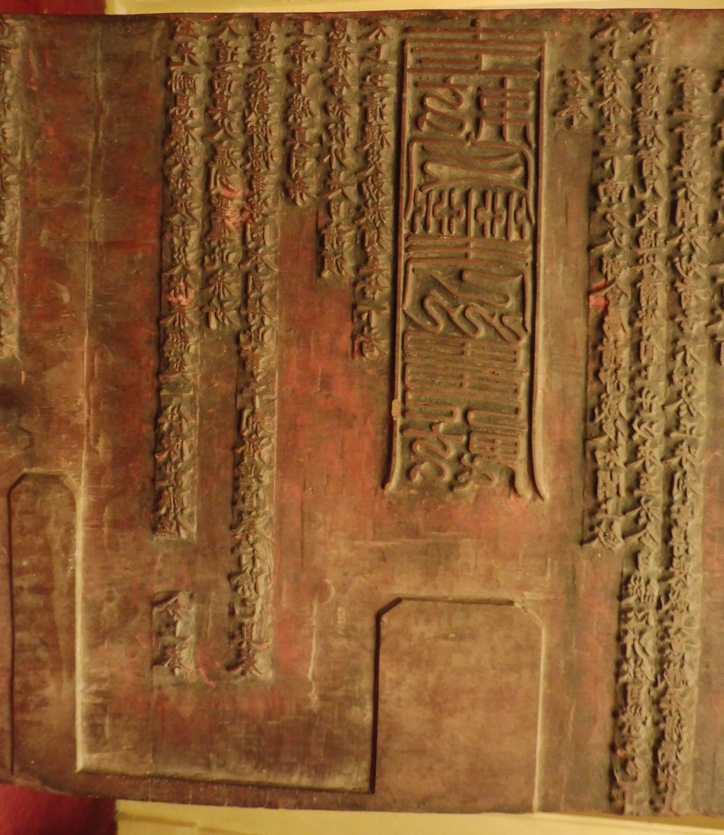 CHINE. MATRICE d'impression en bois gravé d'idéogrammes, recto-verso.