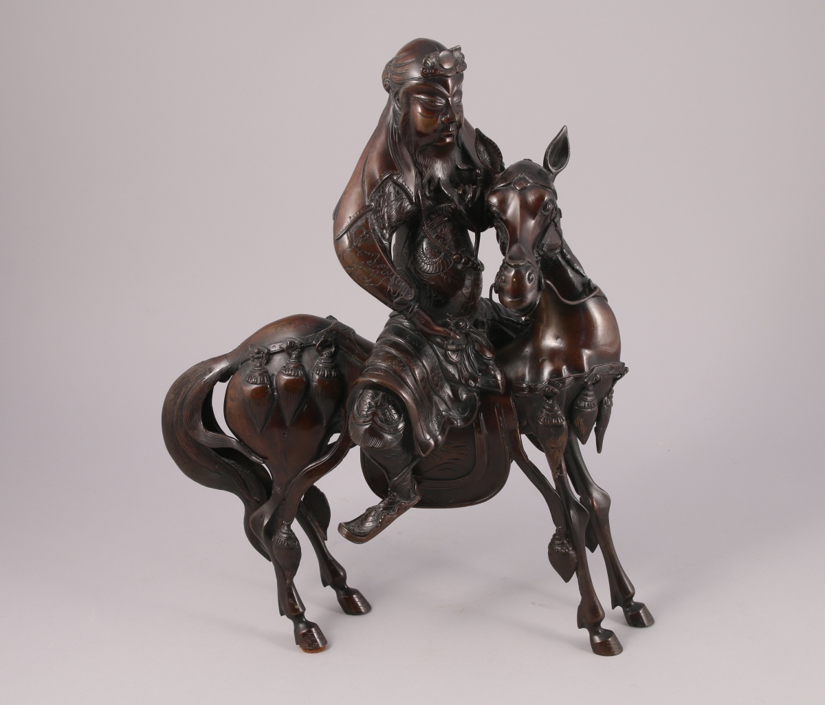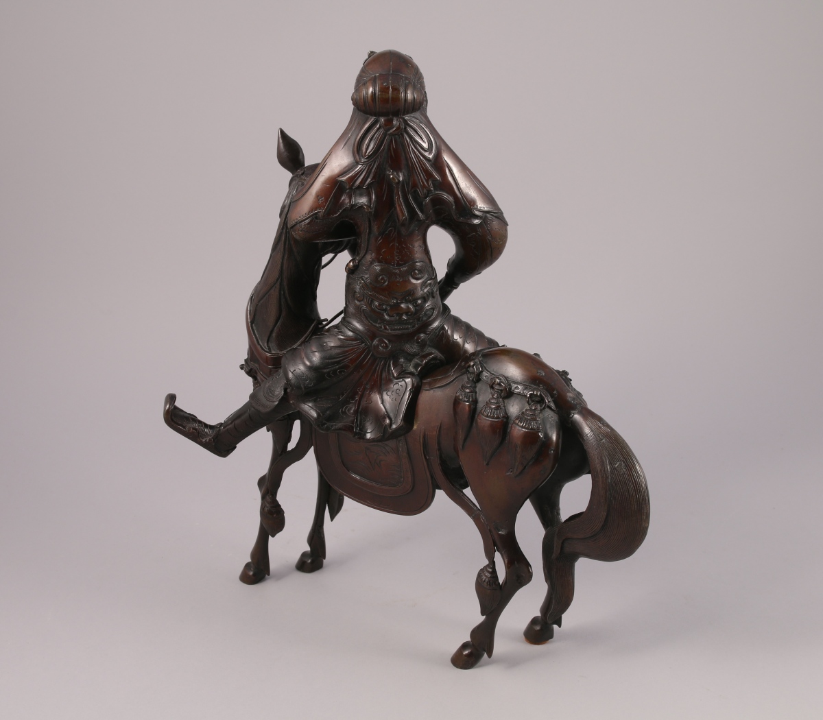 CHINE - XIX-XXe. Cavalier sur sa monture. Bronze.