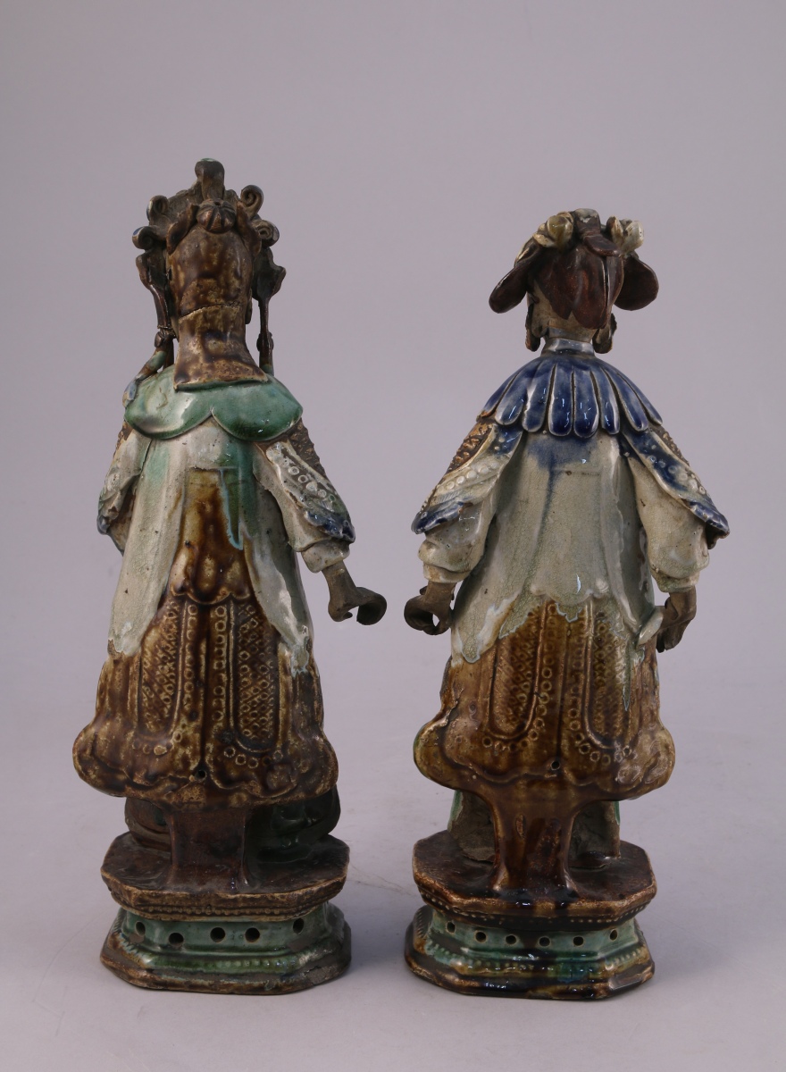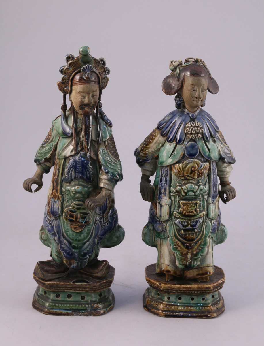 CHINE - SHIWAN - fin XIXe. Deux PERSONNAGES formant un couple en grès vernissé.