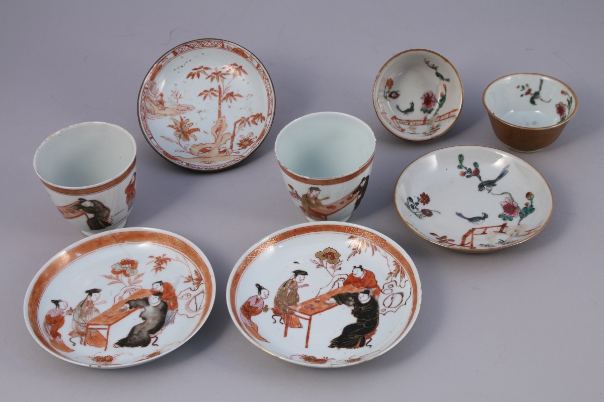 CHINE et JAPON - XIX- XXe. Importante réunion de PORCELAINES, 33 pièces, dont: suite de trois assiettes, verseuse imari, 10 bols à saté et leurs sous-tasses, 7 assiettes...