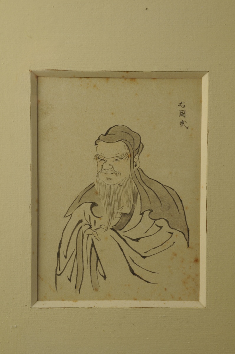 JAPON - XVIII-XIXe. Quatre DESSINS à l'encre sur papier, Daruma...