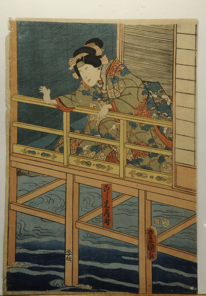 TOYOKUNI III (1786-1865). Estampe figurant une geisha.