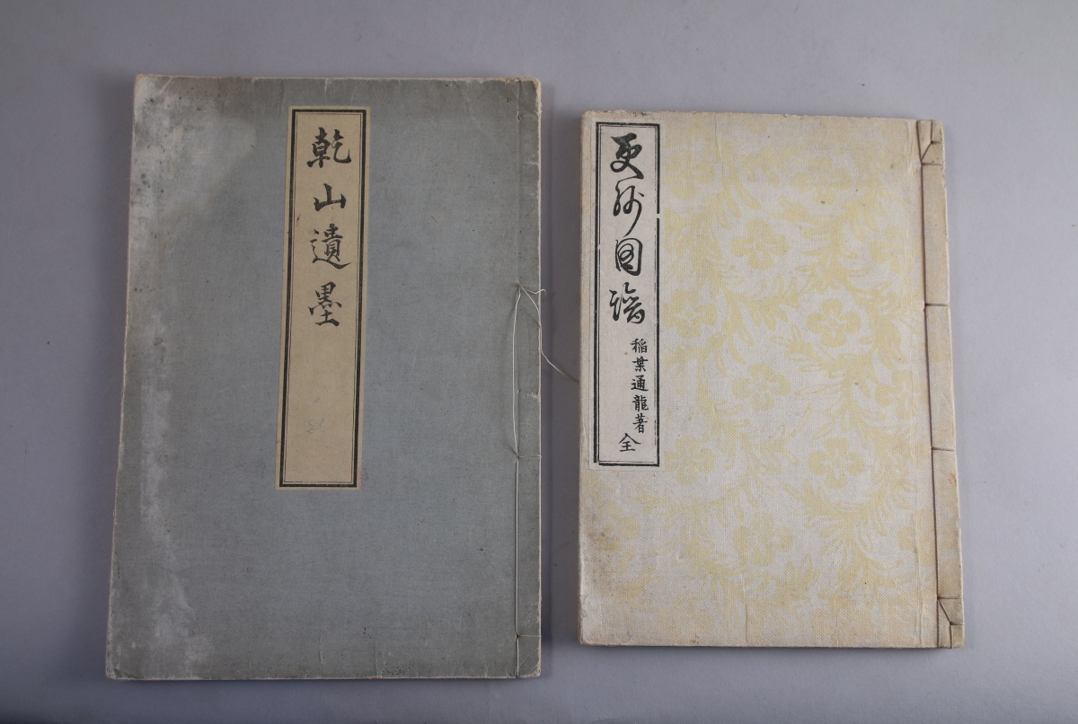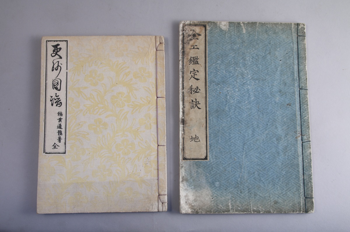 JAPON - Époque MEIJI (1868 - 1912). CINQ ALBUMS illustrant des décors de tsuba et de tissus. Tirages Meiji.