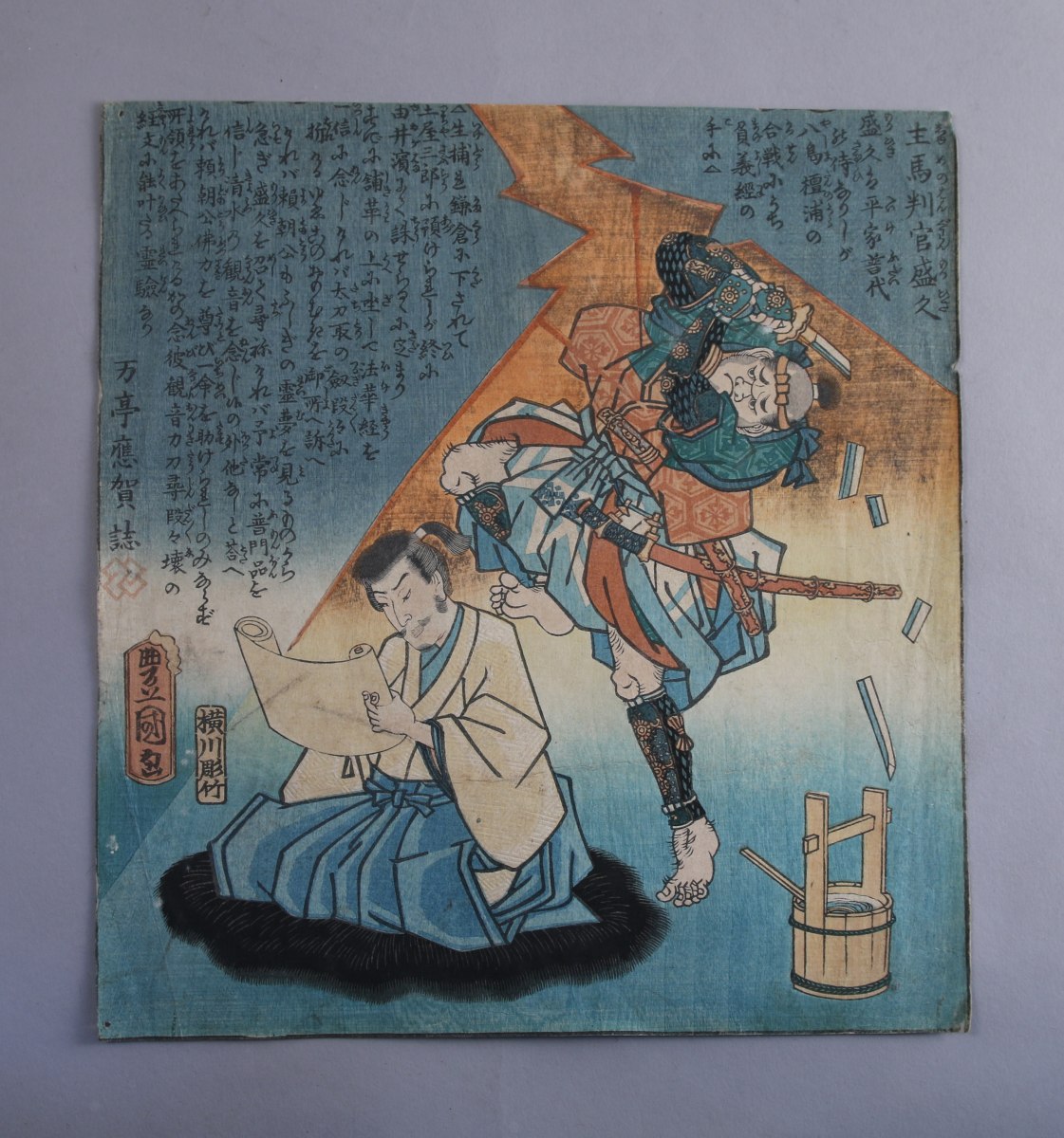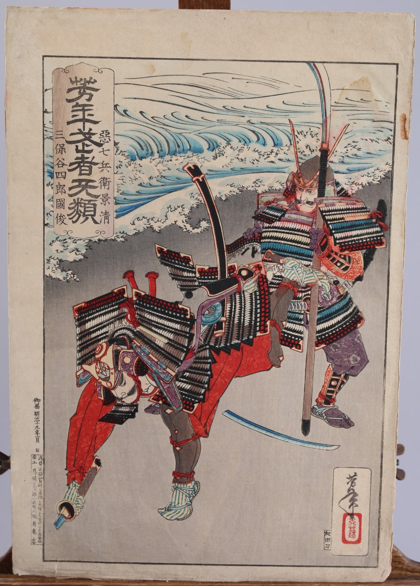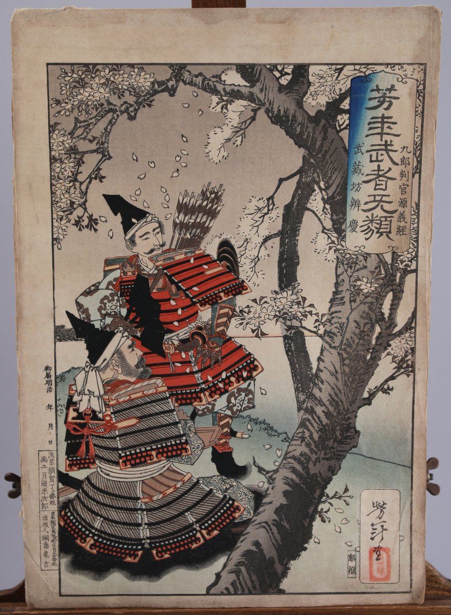 RÉUNION de CINQ ESTAMPES, dont deux par Toyokuni III (coupées), deux par Yoshitoshi, et un retirage d'après Eishi.