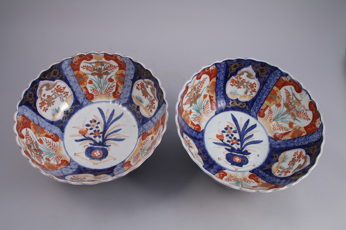 JAPON - IMARI - XIX-XXe. Paire de VASQUES en porcelaine...