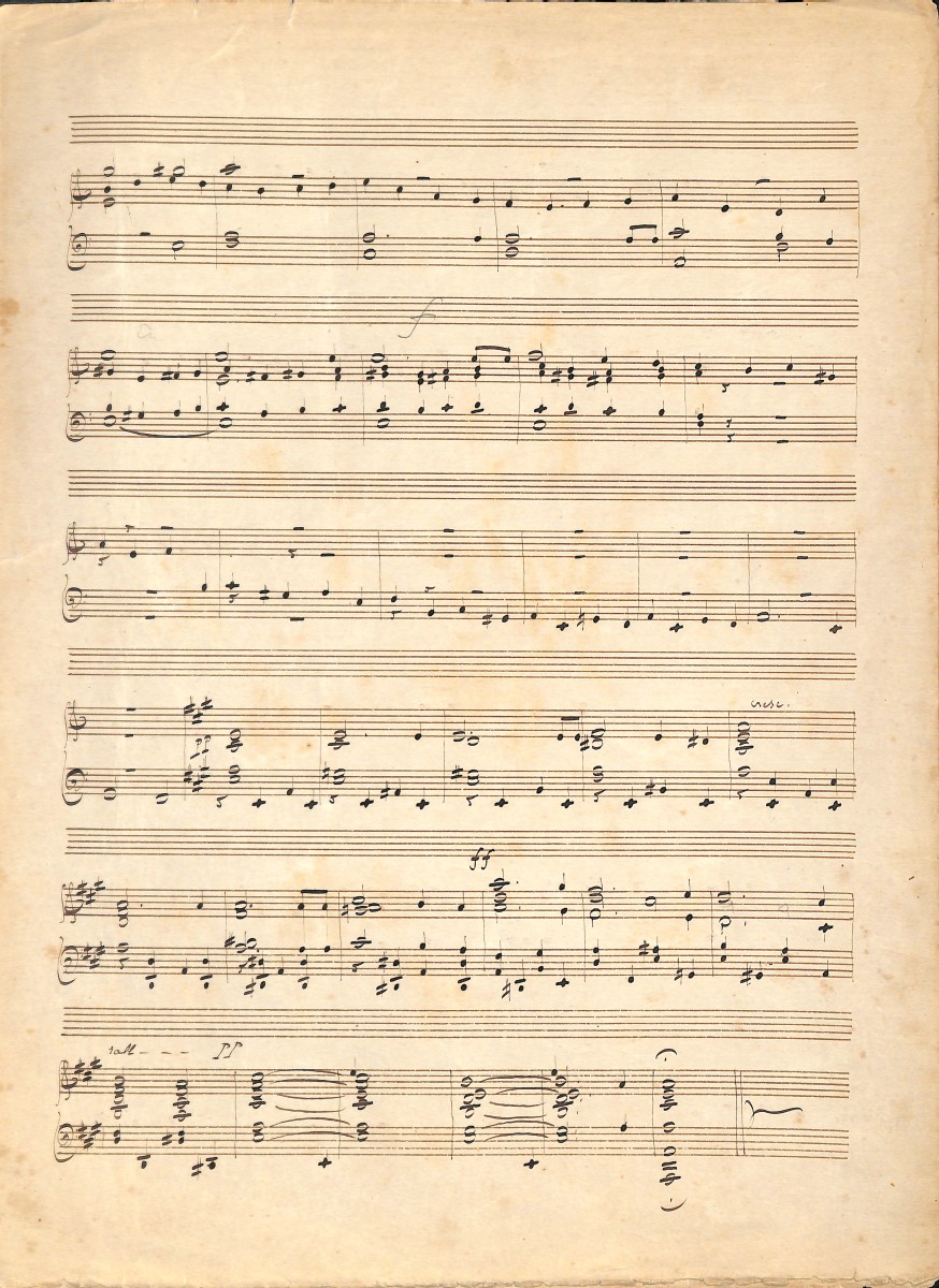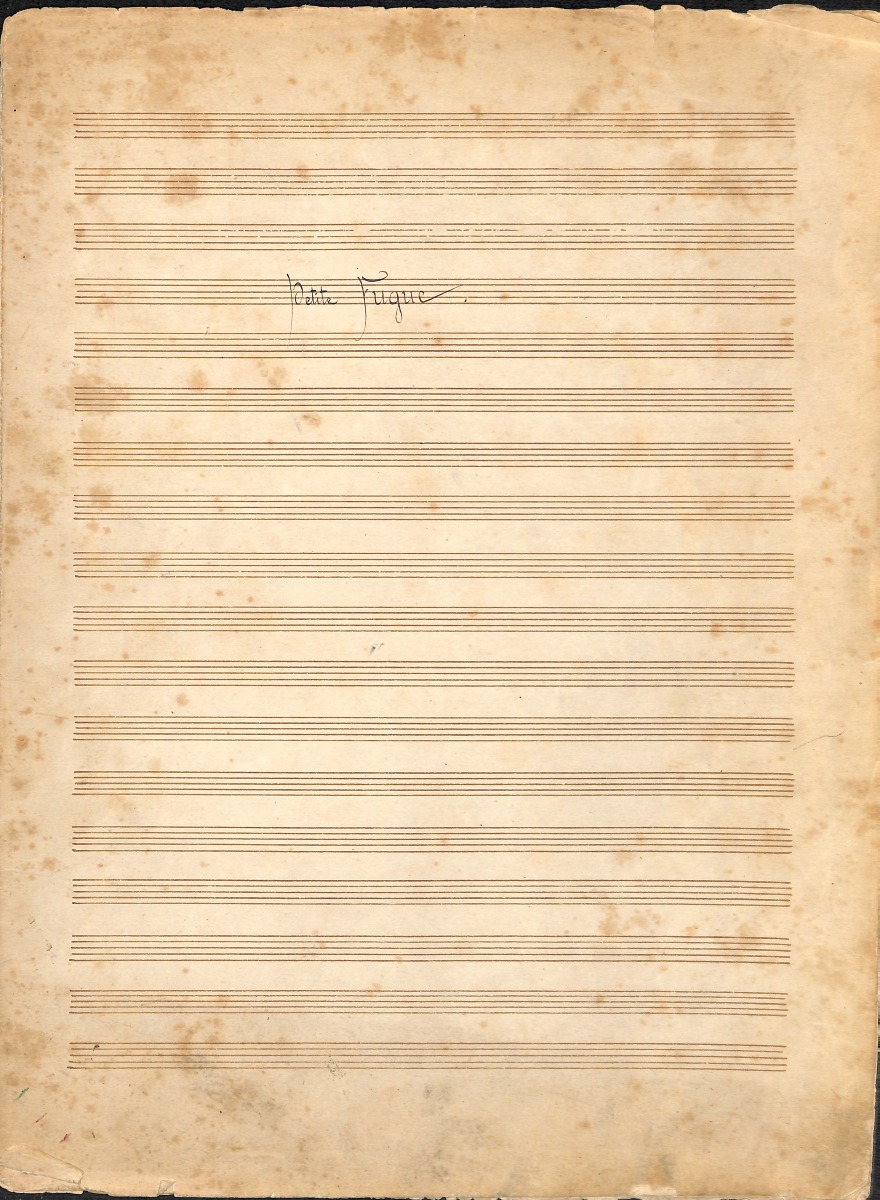 Manuscrit musical autographe intitulé " Petite fugue " en la mineur pour piano, avec envoi daté et signé par le compositeur " à Mademoiselle Laure de Leyritz/ respectueux souvenir de son professeur/ 30 juin 1869 ", [1] + 3 pages in-fol., à l'encre brune, sur papier à 18 lignes.