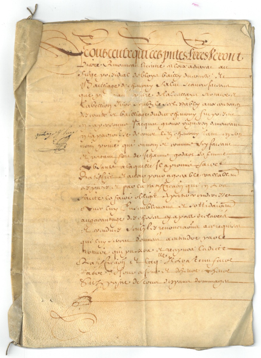 Joint: copie de minute notariale pardevant Me Pierre de la Boullays notaire à Cheverny, datée 22 mars 1637, de la vente d'un quartier de vigne à Cour-Cheverny.