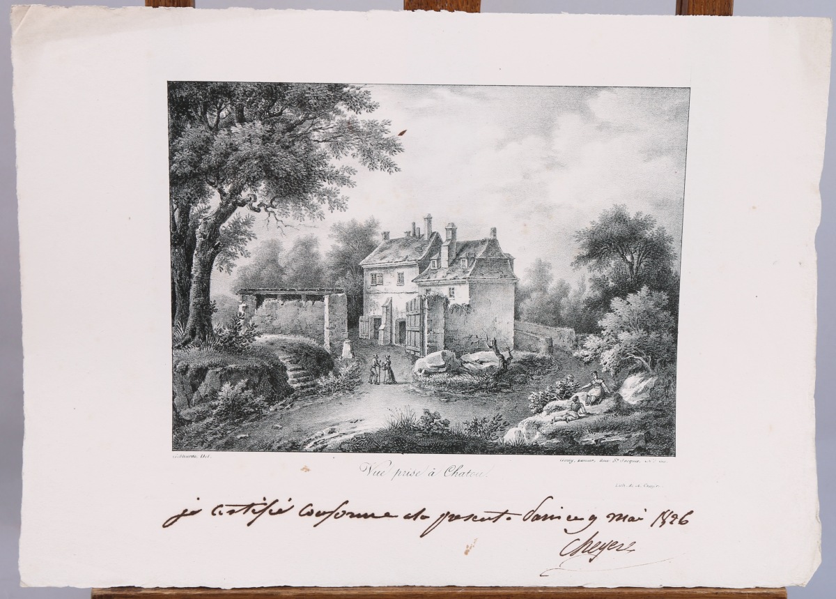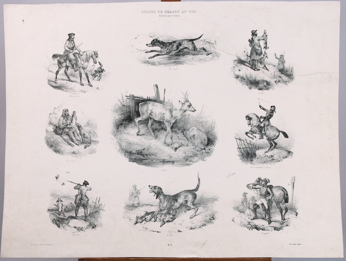 Importante RÉUNION d'environ 180 GRAVURES, LITHOGRAPHIES, procédés du XVII au XXe siècle. Sujets divers: mythologie, cosmographies, paysages, construction navale, publicité, généalogie, vues d'optique... À découvrir, en l'état.