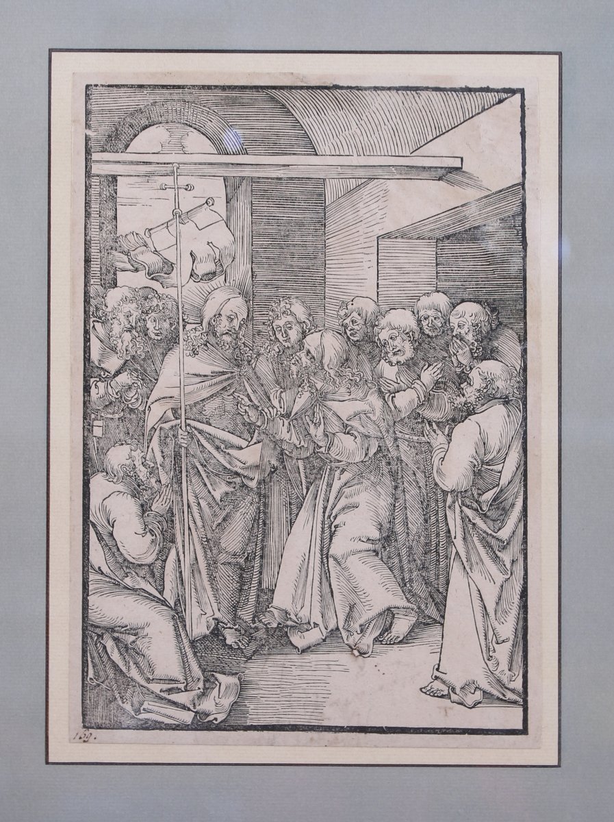 - Hans Leonhard SCHÄUFFELIN (1480 - c.1538). Le Lavement des pieds et l'Incrédulité de saint Thomas. Gravures numérotées à l'encre 169 et 143. 24,8 et 24,5 x 17 (accidents et restaurations)
