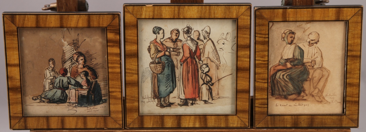 Trois petites gouaches titrées, signées et datées 1829 ou 1830.