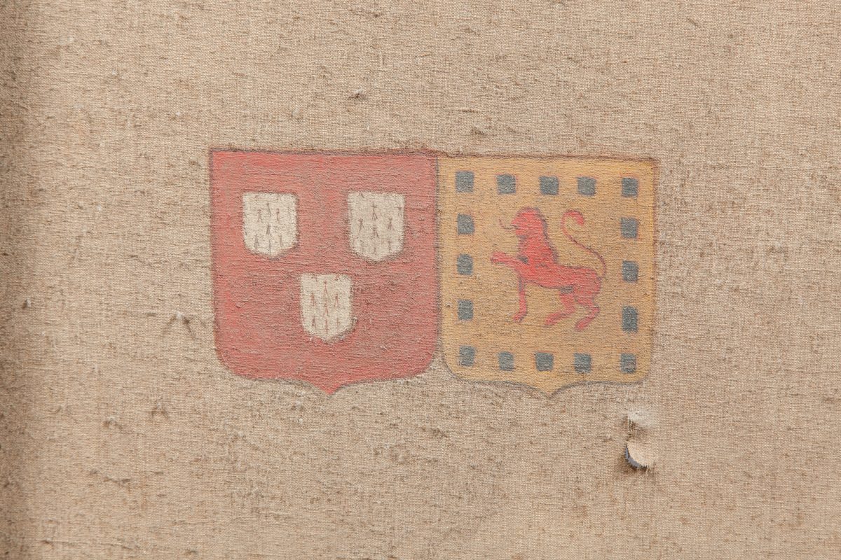 Deux armoiries peintes au revers, celles à senestres sont de Coëtlogon.