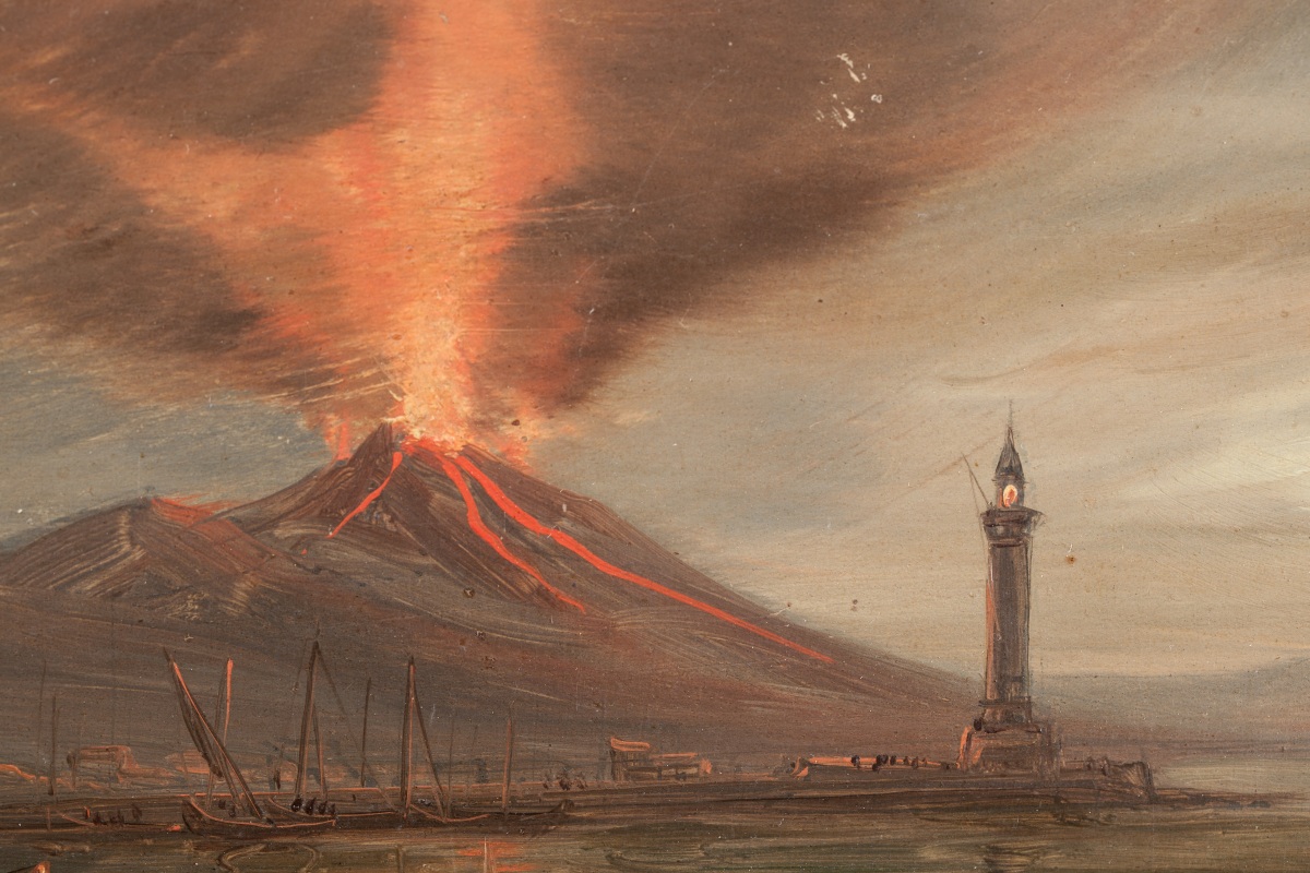 La baie de Naples, la nuit avec l'éruption du Vésuve