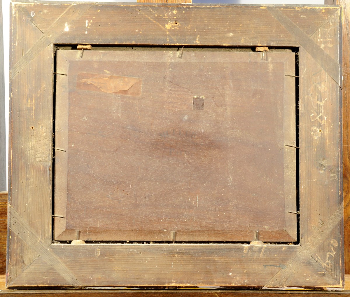 Panneau signé en bois à droite.