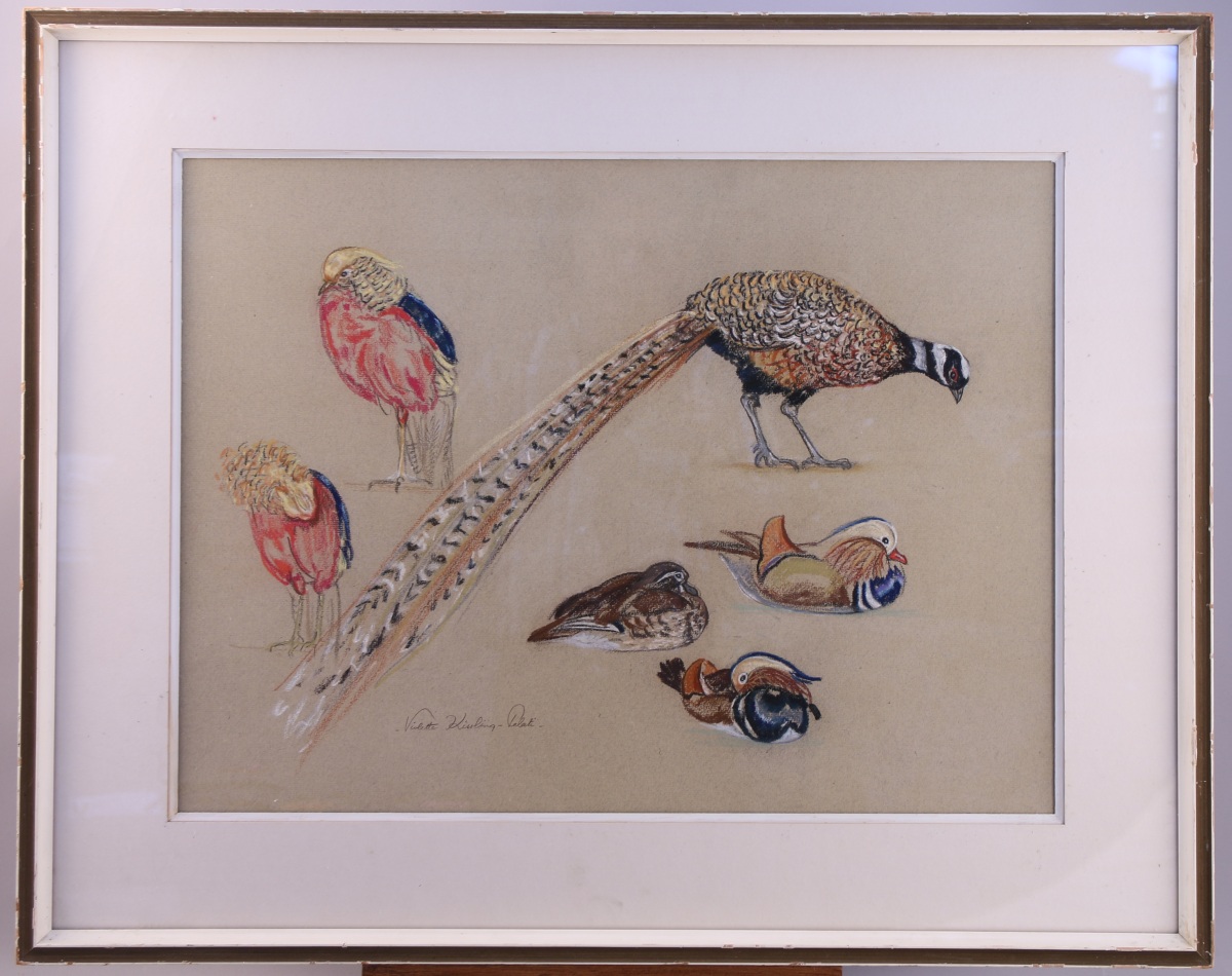 Faisan vénéré, faisan doré et canard mandarin, étude.