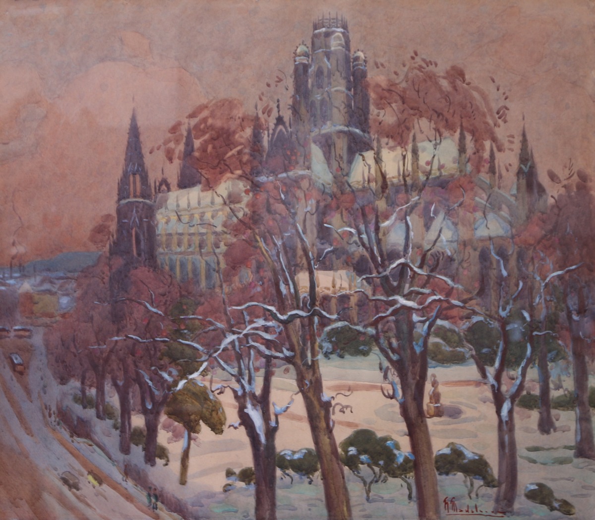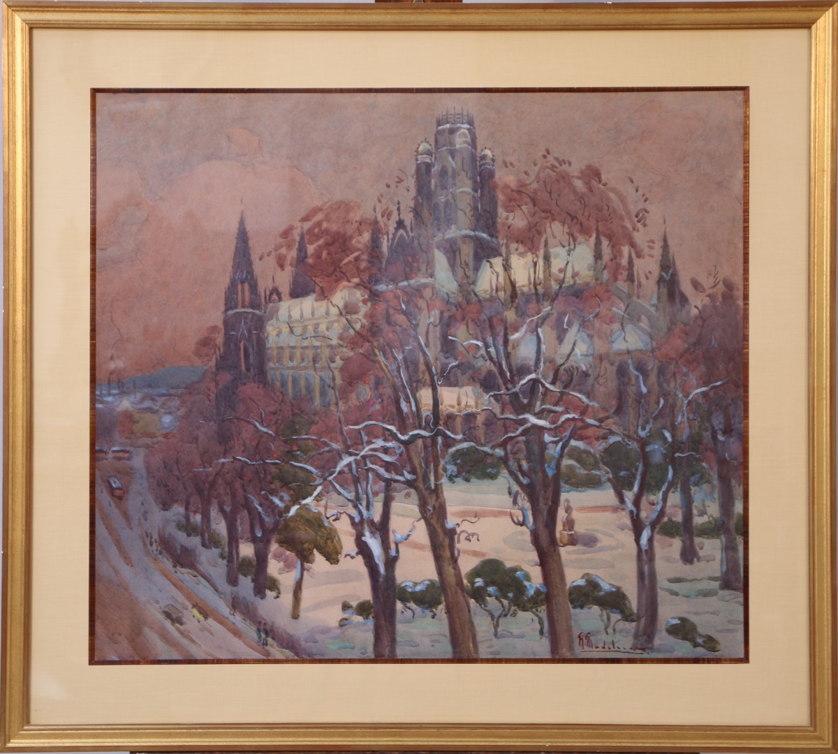 Rouen, l'abbatiale Saint-Ouen sous la neige.