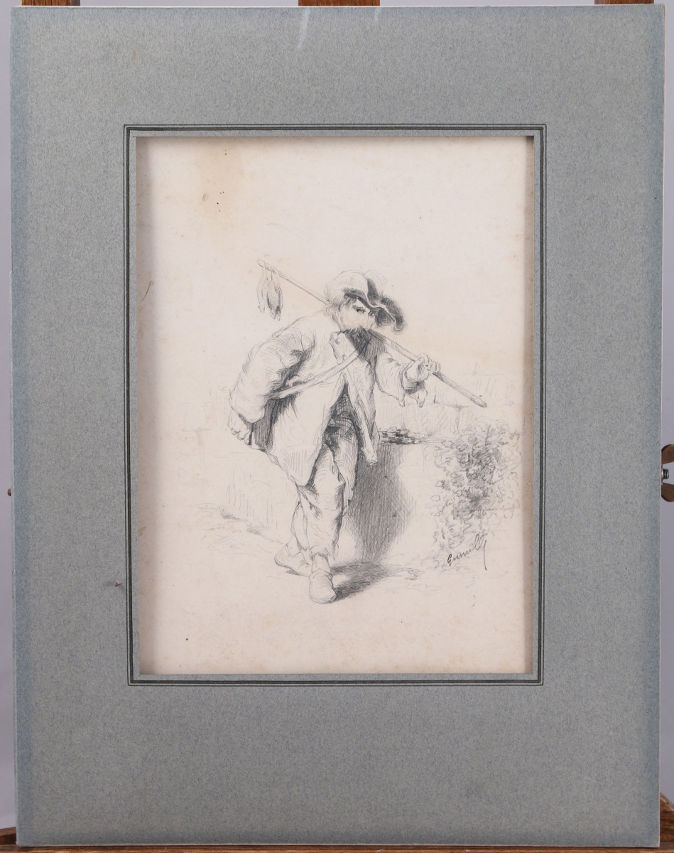 JOINT: GUINELLI? (XIX-XXe). Le chasseur de rats. Mine de plomb signée en bas à droite. 29,5 x 21,5 cm. (rousseurs)