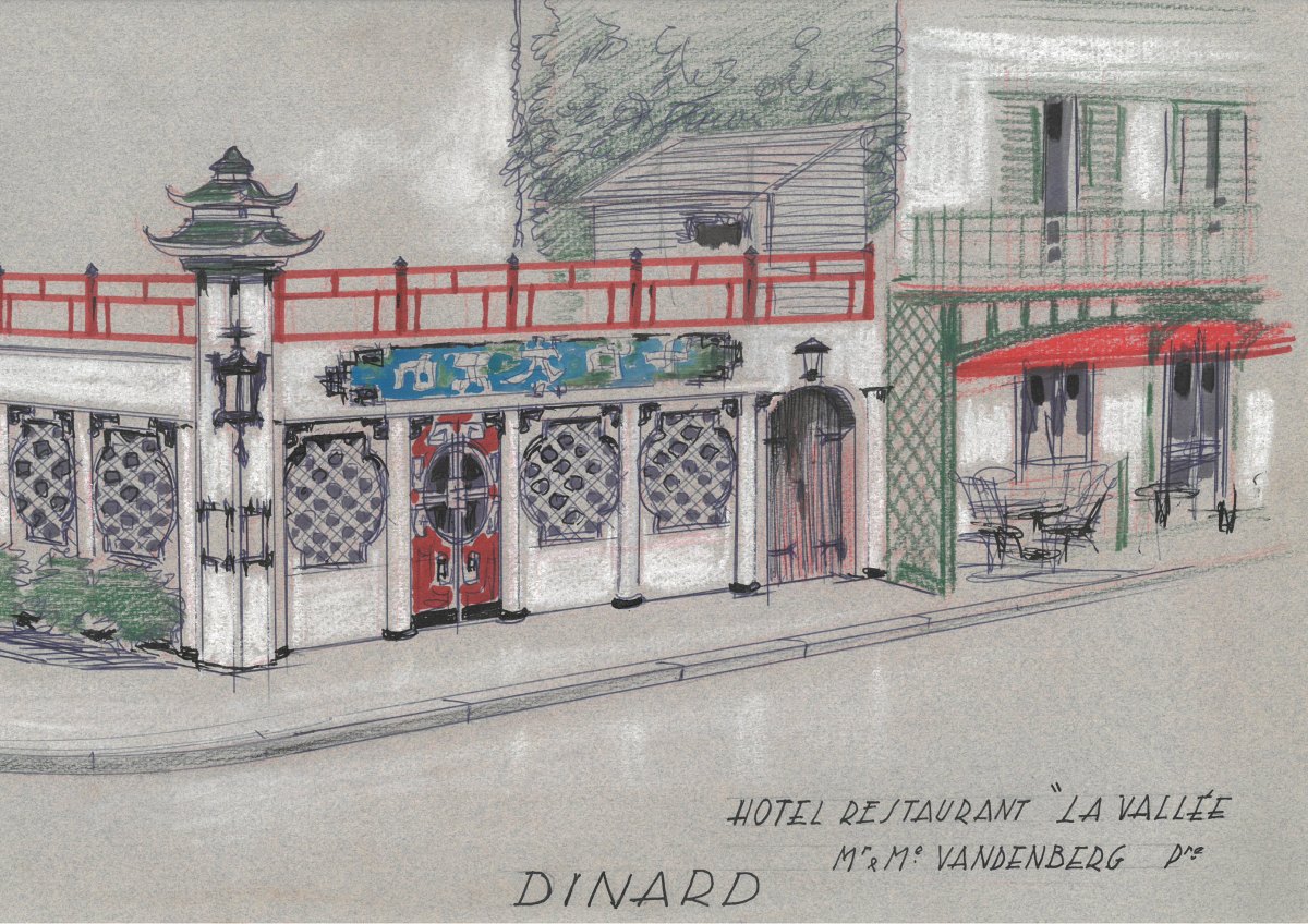 2 projets de décor pour "Hôtel Restaurant La Vallée - Mr et Me Vandenberg Pre - Dinard": façade rue et entrée style Asie.