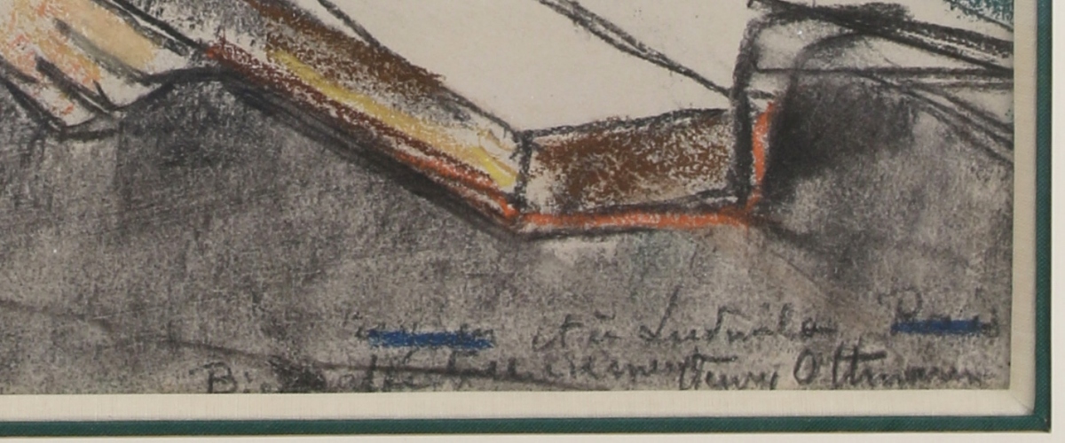 Pastel et fusain sur papier, signé en bas à droite. Porte une dédicace " Chère Ludmila..."