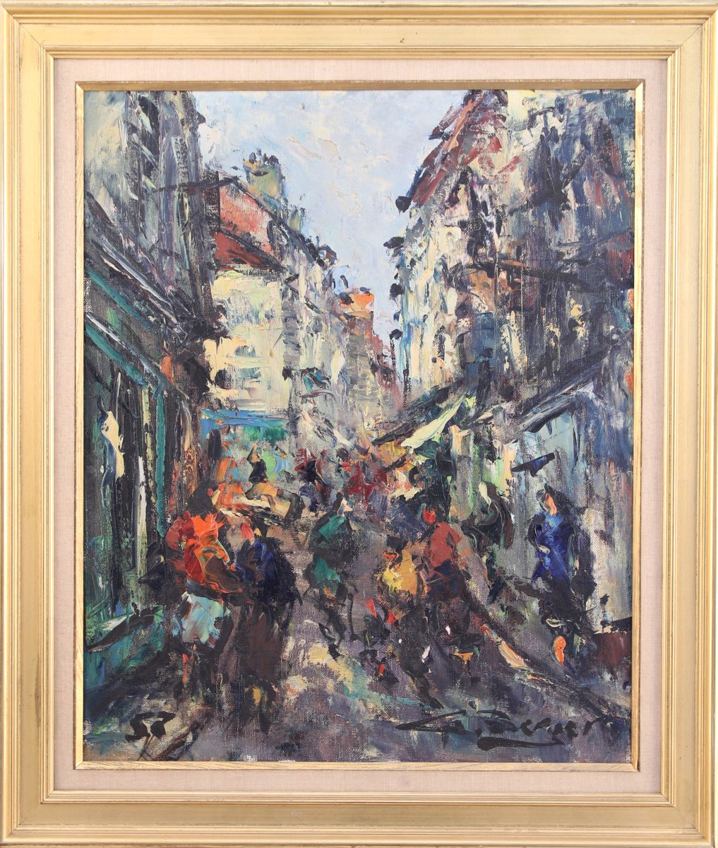 Georges BERGER (1908-1976) Scène de rue animée. Toile signée en bas à droite. 46 x 38 cm.