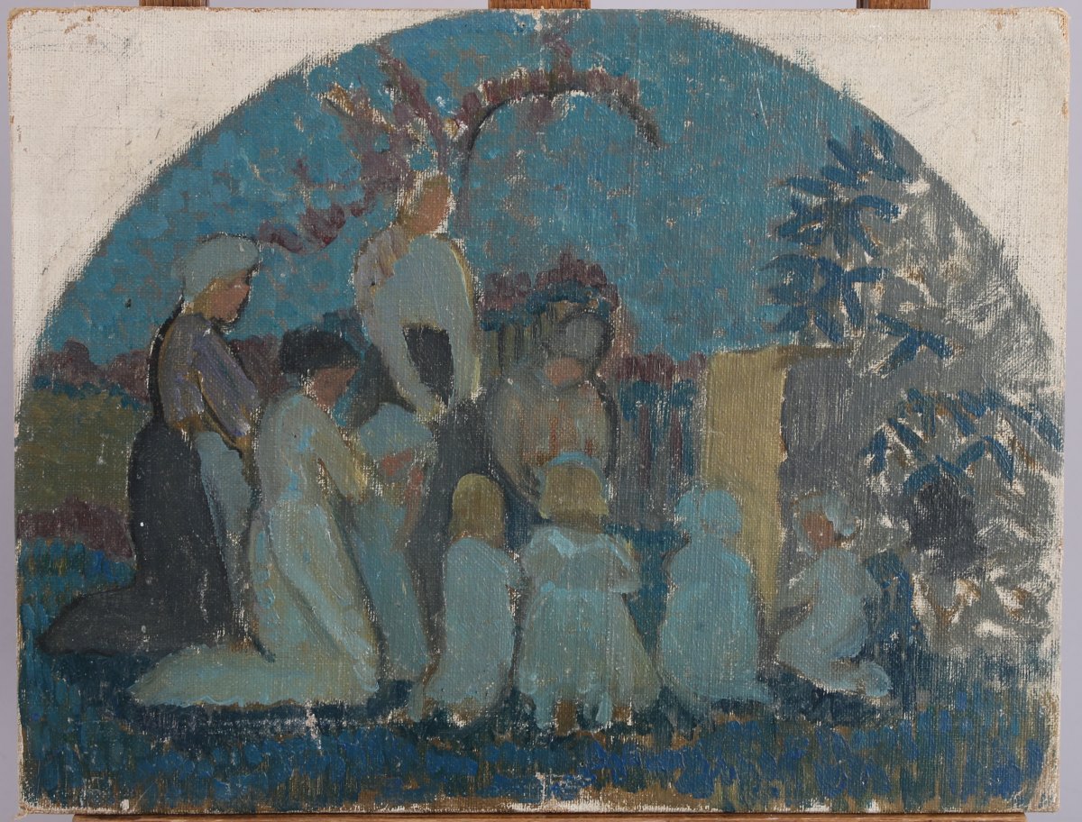 Esquisse figurant un groupe de femmes et d'enfants en prière.