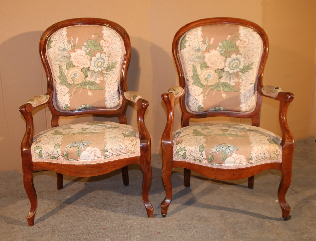 Paire de FAUTEUILS cabriolet en bois fruitier mouluré. XIXe.