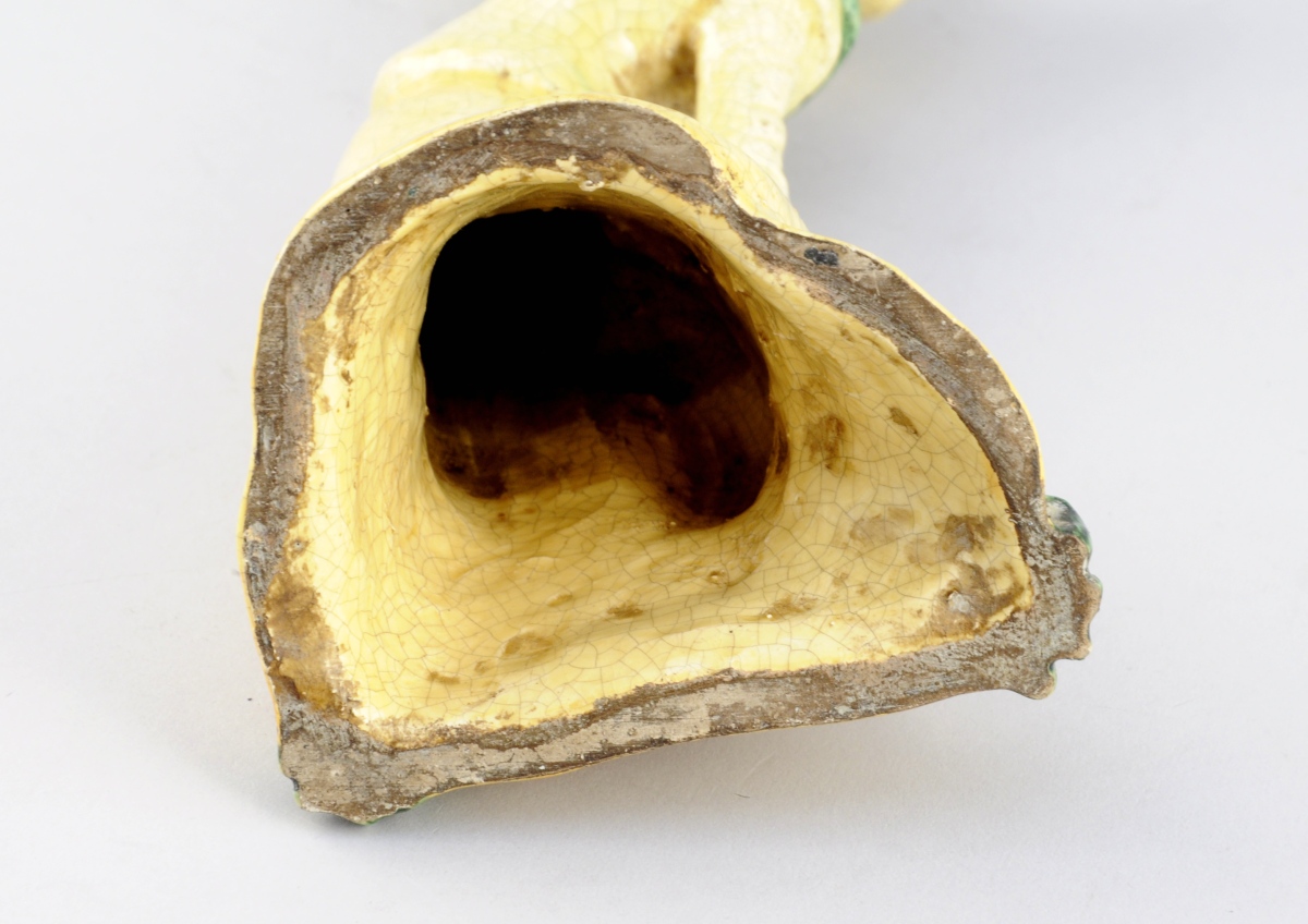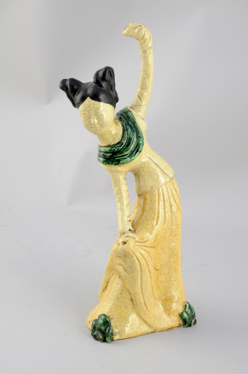 DANSEUSE en grès (?) émaillé jaune craquelé, vert et noir.