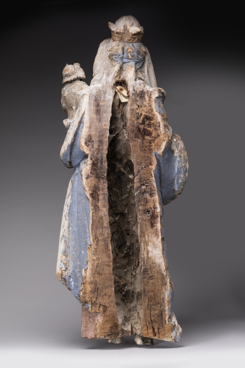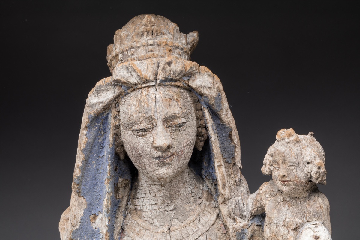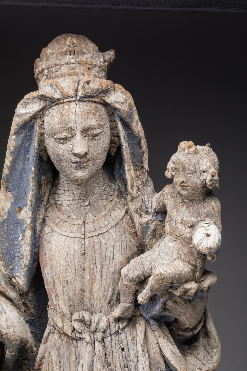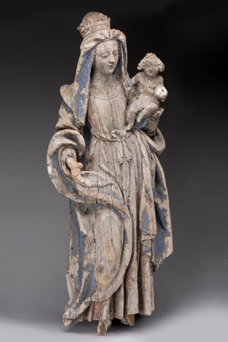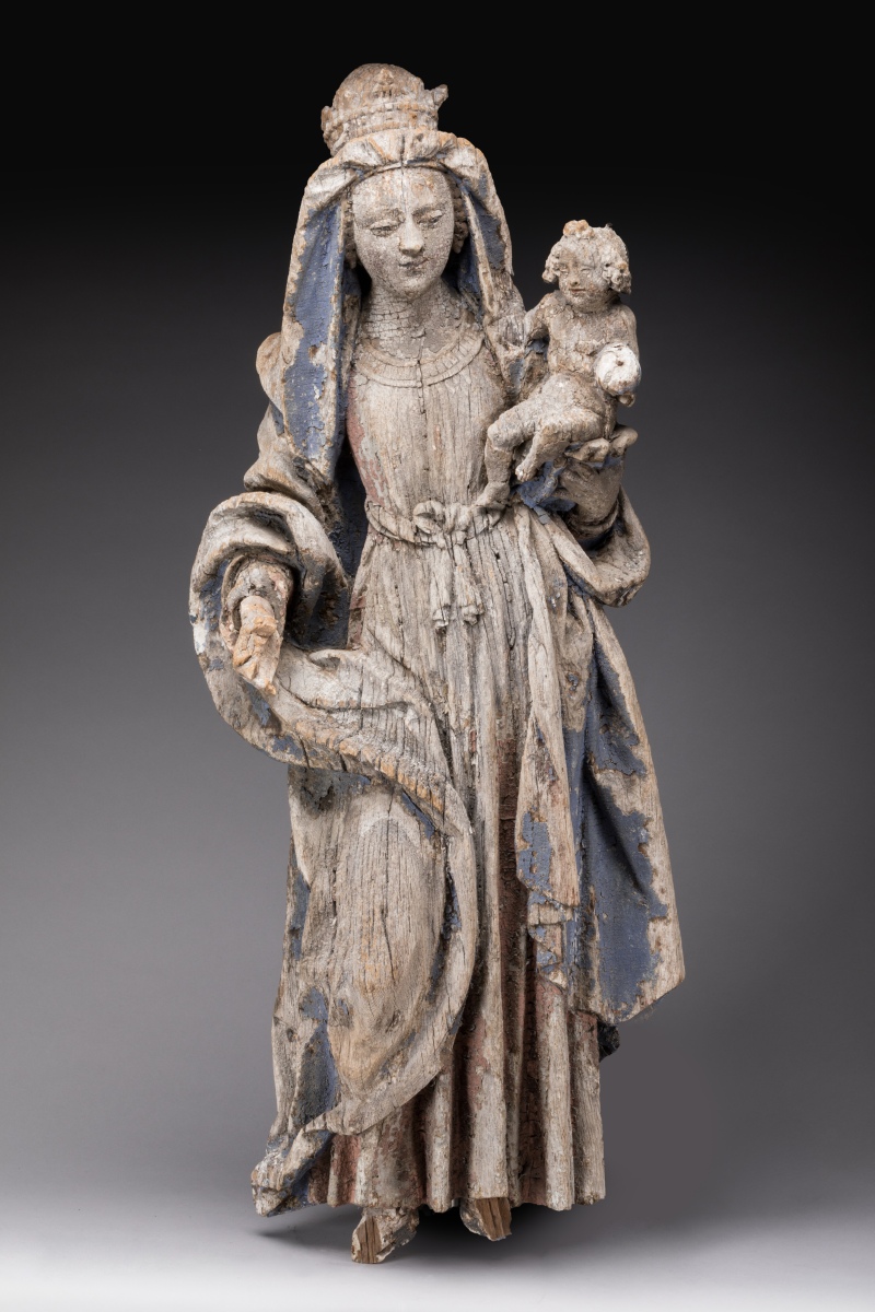 A wood group of VIRGIN and CHILD attributed to Michel Lourde from the progeny of the Reiset estate at the Breuil-Benoit Abbey. First half of 17th century.